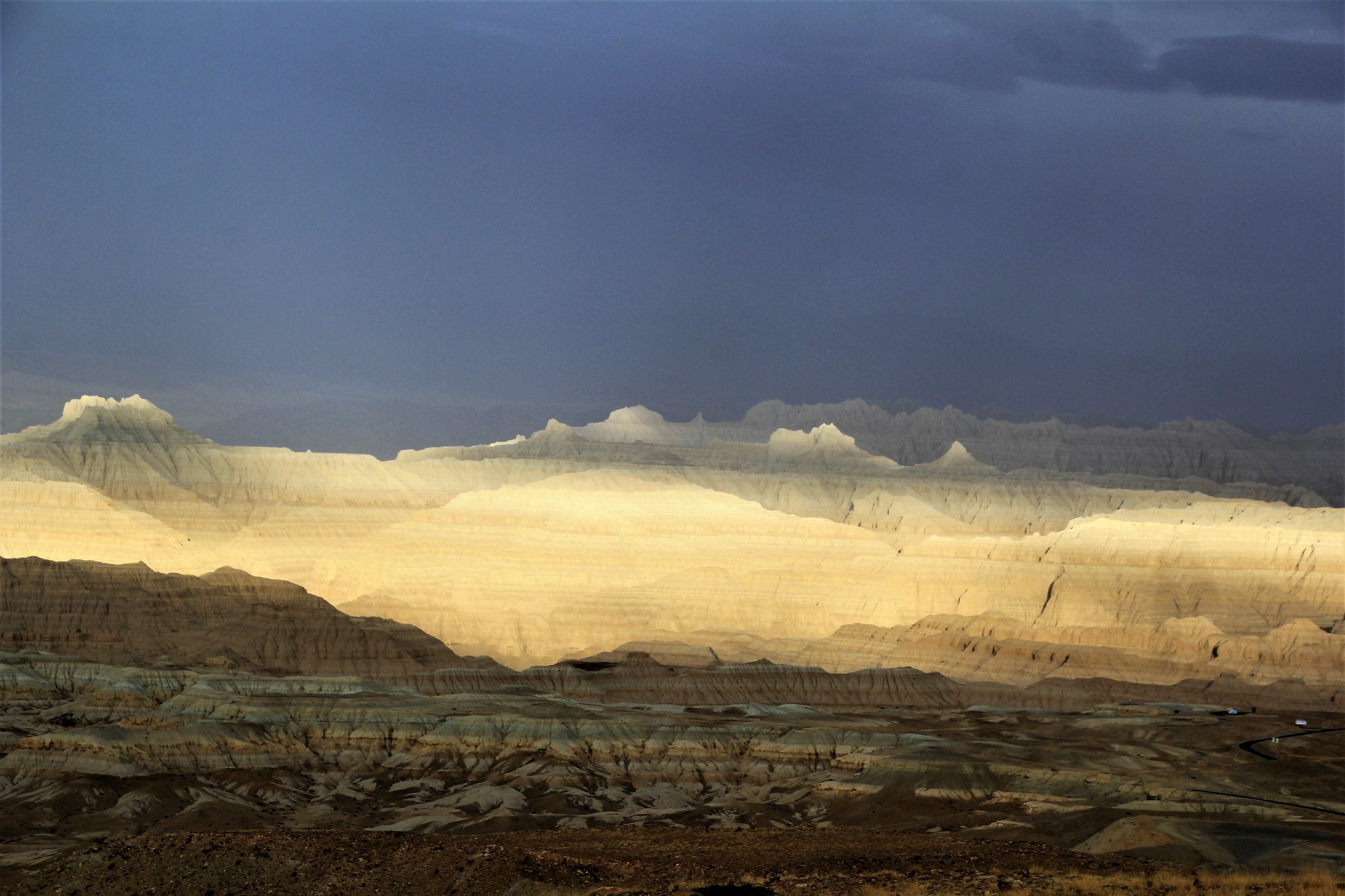 6月17日,札达土林。札达土林从北西到南东,海拔大体在4500米上下,绵延175公里,宽达45公里。札达土林地貌是阿里的一大奇观。札达土林地貌在地质学上叫河湖相。成因于百万年的地质变迁。札达土林远远望去,整个土体就像是一座座森严壁垒的古堡,因此又称古堡式残丘。其规模之浩大,气势之磅礴委实令人震撼,令人叹为观止。