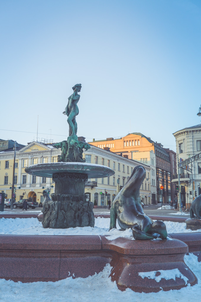 赫尔辛基的市中心就位于老城区的客运港旁边,这里除了有露天市场(Kauppatori)之外,还有喷泉和赫尔辛基的象征——美人鱼哈维斯•阿曼达塑像(Havis Amanda)。