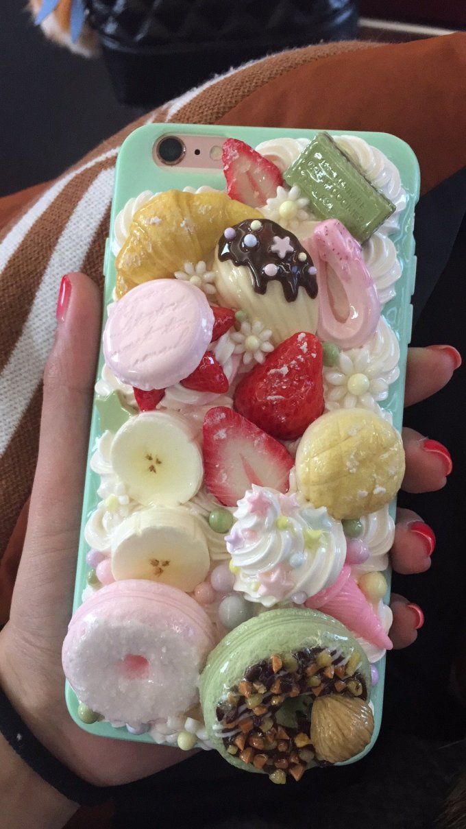 是的,我的手机外面包裹的就是下面这个塞满了甜点和奶油的手机壳