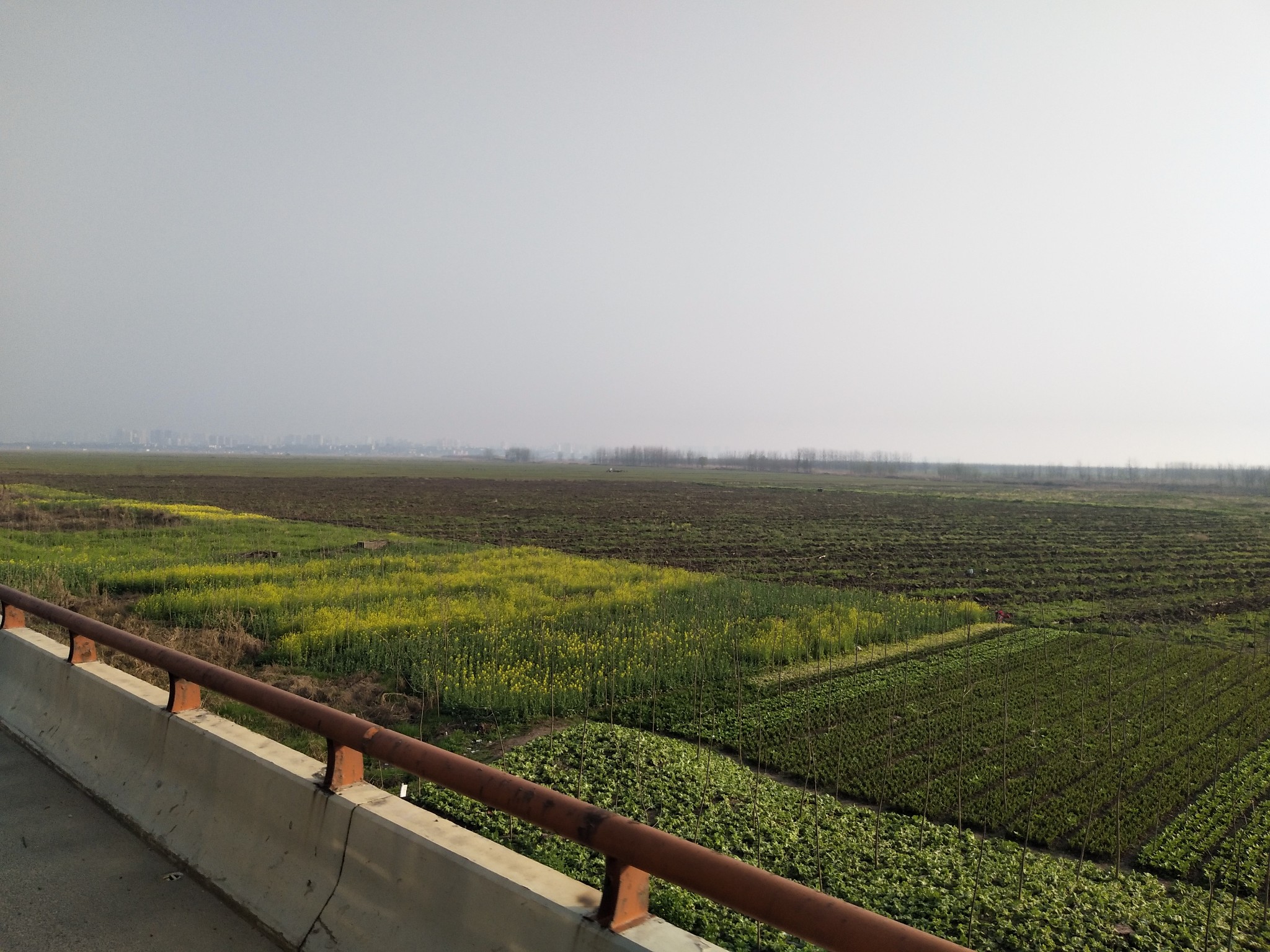 ▲沿途能看到洞庭湖周边的很多农田,黄色的貌似是油菜花。