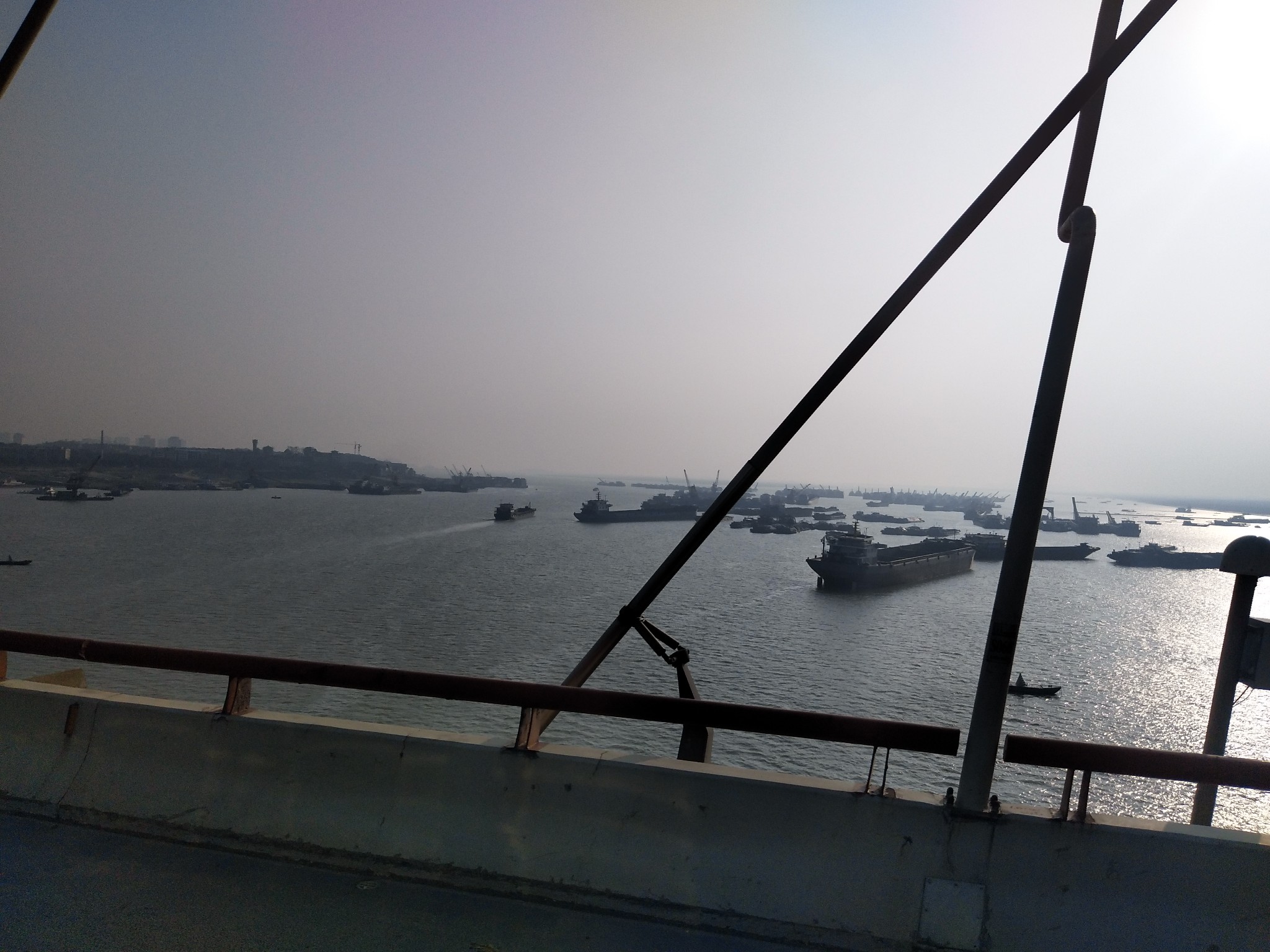 ▲把手机探出来拍一张,可以远远看见从洞庭湖大桥。