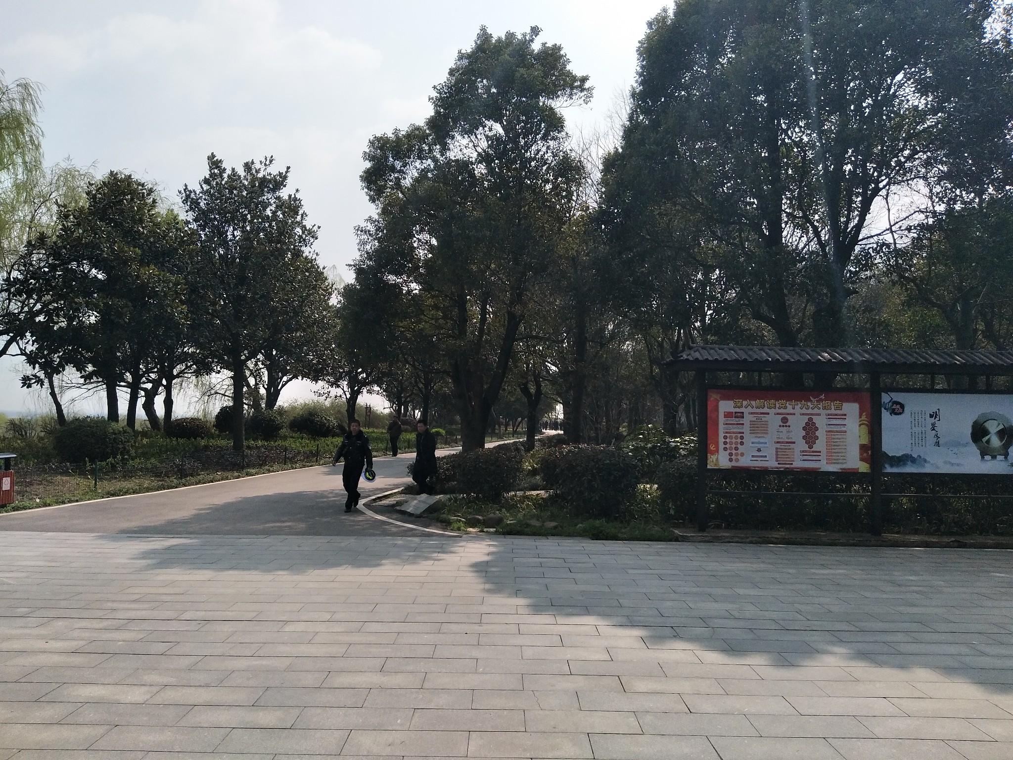 ▲公交车在这里停下,往前走就是君山公园入口。