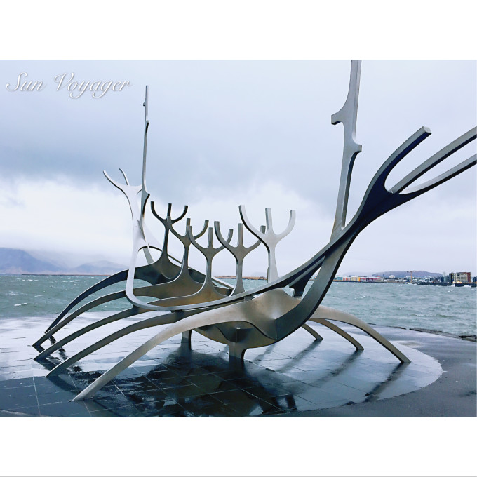 哈帕音乐厅的外面就是太阳航海者。太阳航海者,是冰岛雕塑家阿尔纳森(Jón Gunnar Árnason, 1931–1989)的杰作,座落在雷克雅未克市区中心的海湾边。不锈钢的材质,体现的是维京人航海的海盗船的骨架。这个雕塑象征着冰岛人们征服海洋的历史和决心,也成为了雷克雅未克的城市地标之一。
