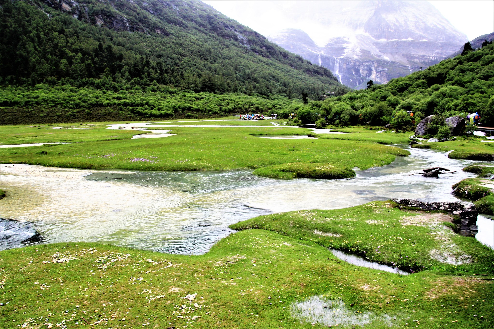 6月29日,稻城亚丁洛绒牛场风光。稻城亚丁风景区位于四川省甘孜藏族自治州稻城县香格里拉镇亚丁村境内,主要由仙乃日、央迈勇、夏诺多吉三座神山和周围的河流、湖泊和高山草甸组成,它的景致保持着在地球上近绝迹的纯粹,因其独特的地貌和原生态的自然风光,被誉为香格里拉之魂和最后的香格里拉。