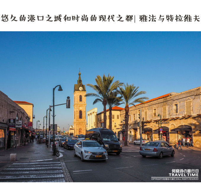 夕阳下的雅法被镀上了一层金色,山上老建筑的寂静与林立商铺的热闹形成了鲜明的对比。长长的海岸线是这里活力的体现,形色男女皆成了一道风景。