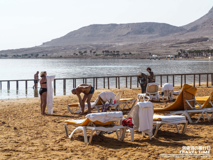 不同种类的死海泥能在死海附近的商店里买到,直接往身上涂抹,干了之后再去死海里洗掉,畅游一番后在沙滩上有许多供游客使用的淡水冲洗区域。