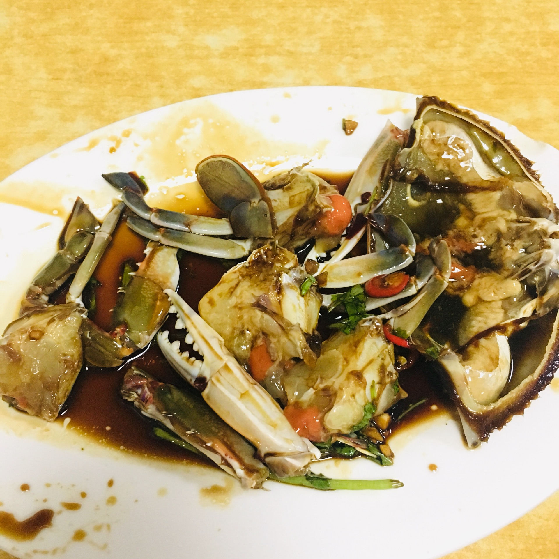 菜上的很快,很快就上齐了。小瓶子不吃生腌,尝了鹅肠,觉得还挺好吃的。晓龙同志尝了一下腌虾,觉得还行,又尝了一下腌蟹,看那表情,痛不欲生生无可恋。接下来轮到我尝鲜了。先夹起一只虾,用嘴巴去了皮,品尝着虾鲜嫩的肉质。再夹起一块螃蟹,哇塞,肉质的肌理和鲜嫩在舌尖绽放。鹅肠特别入味、有嚼劲。鱼饭是蒸了以后放凉的鱼,没有饭。还挺特别的,味道一般,可以试下。我和小哥哥把这些解决后,我们就回去了。另两位回程上一直在吐槽,可见在他们的心里留下了多么深刻的记忆啊!