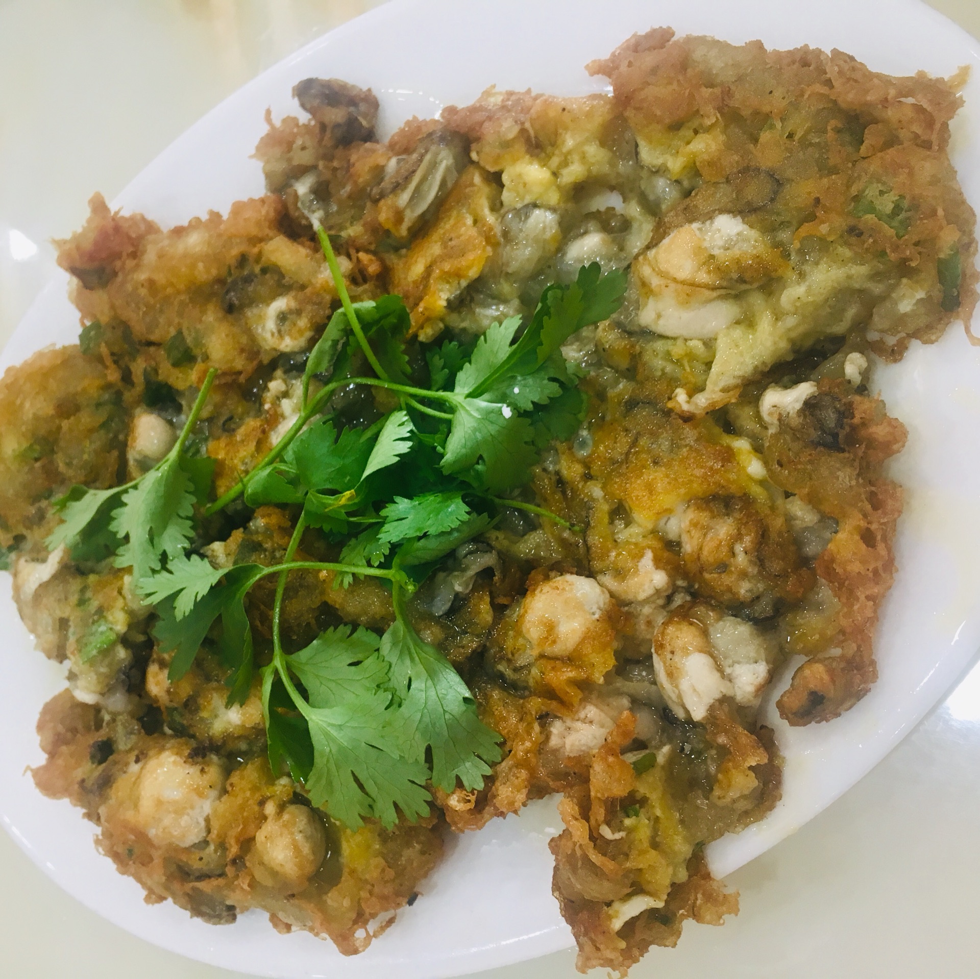 金牌蚝烙,原本是要蘸鱼露来吃的。我不喜欢鱼露,直接吃的。外表酥脆,里面生蚝肉鲜嫩多汁。刚吃的时候还挺好吃的,吃多了就觉得有点腻了。