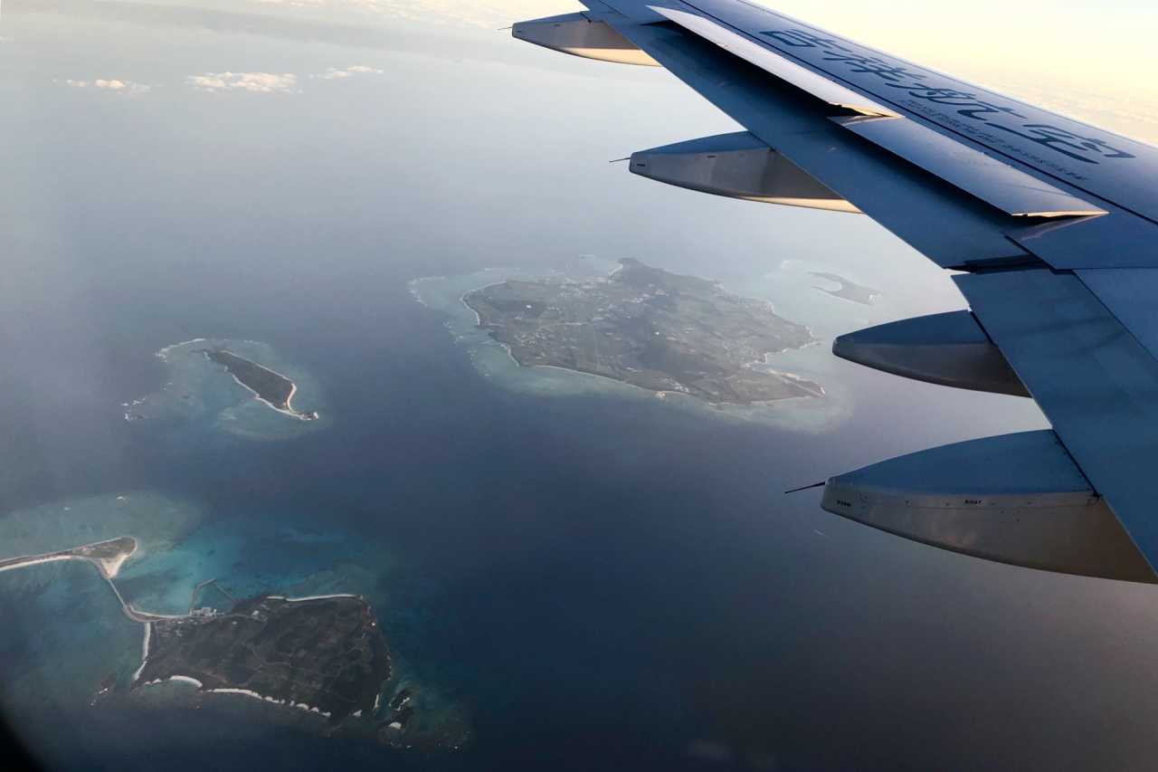 上海到冲绳的飞行时间2小时不到,在飞机上,一路上看着层层海浪、零星的海上岛屿、海鱼掀起的白浪,不知不觉就到啦