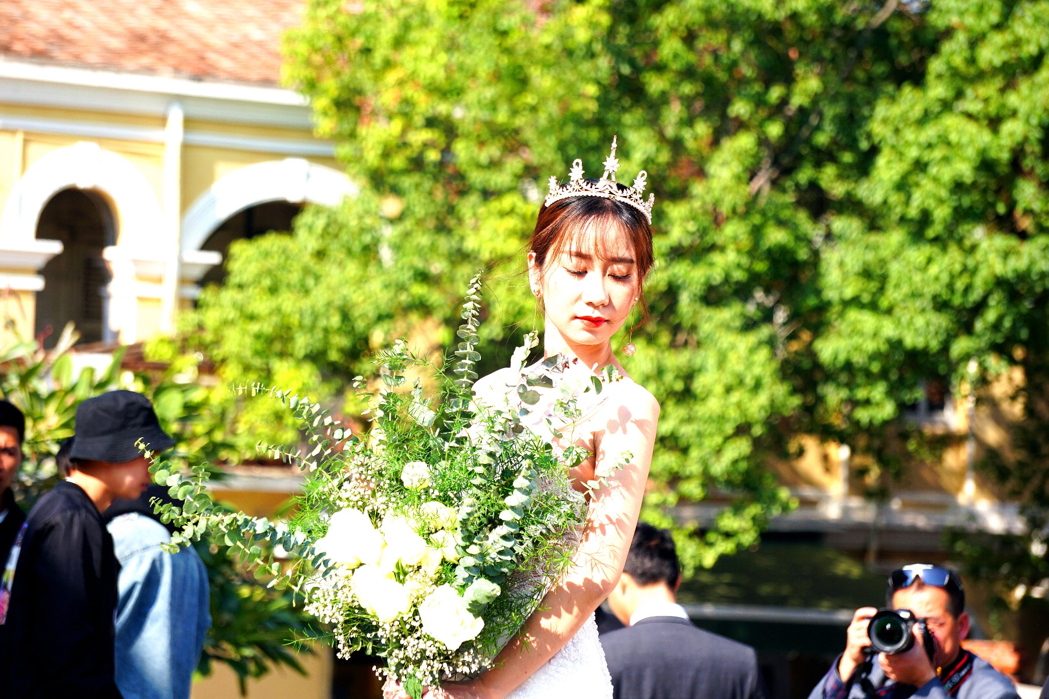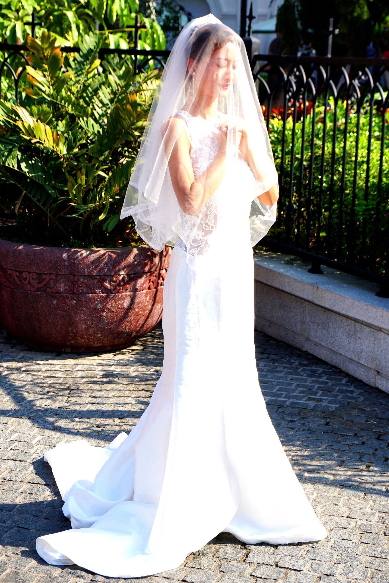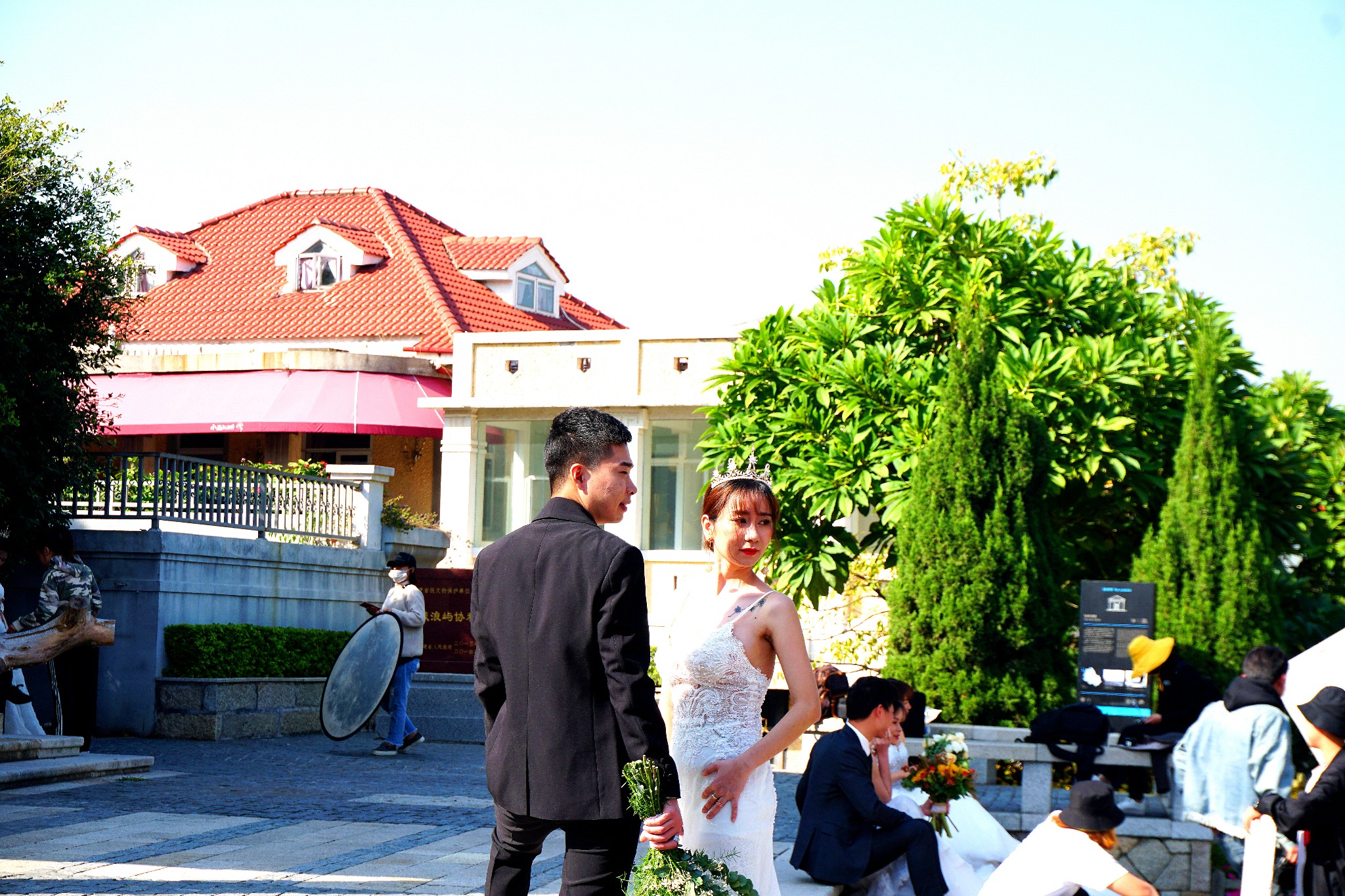 沿着石板铺就的小路前行,远远的看见一座哥特式建筑,就是岛上的天主堂。天主堂前的小广场上,大约有十几对正在拍婚纱照的情侣。男男女女在这时是最好的演员,不管摄影师怎样的摆布要求,脸上永远是僵硬的笑容。