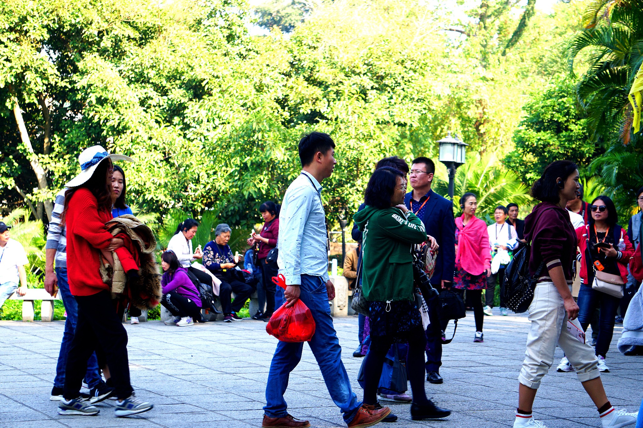 岛子上的街道曲折迂回但是四通八达,虽然不是旺季,但每条巷子里都是密密的人流。由于来自天南海北,这个季节游客的穿衣也成了岛上的风景。有穿的薄纱的少女,穿着棉衣的老人,最多的还是花花绿绿的大妈团,争先恐后的拥挤在绿树红花的拍照处,只要她们占据了有利位置,其他人再很难插进去。