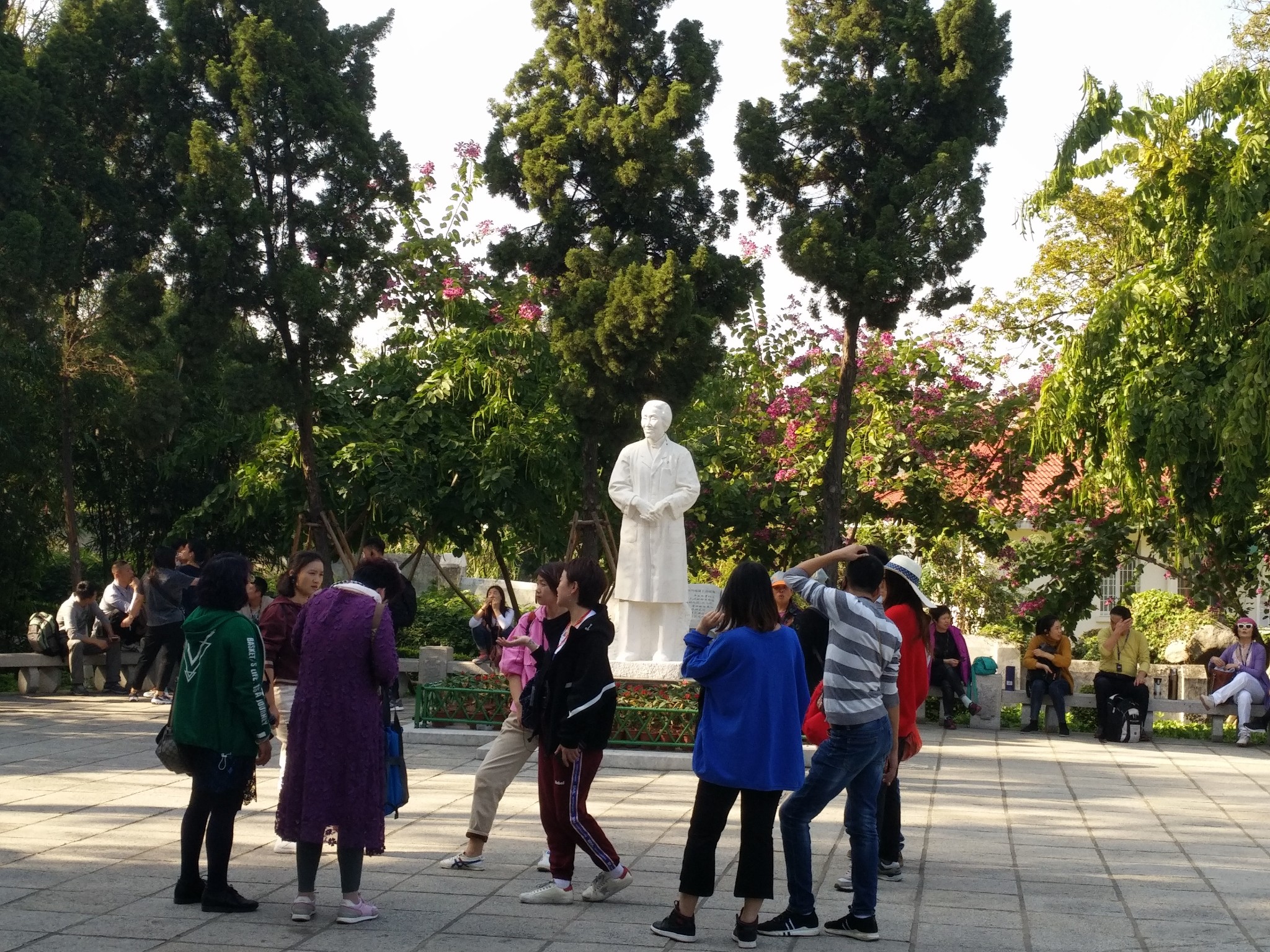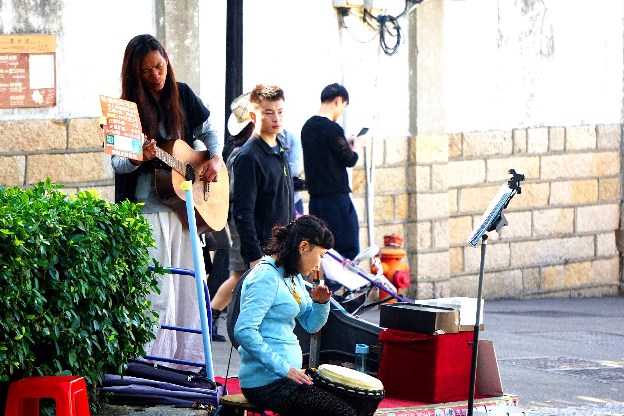 岛子上出了很多名人,林巧稚,马约翰就是其中的代表。围绕着名人的纪念馆的周围,道路,公园,甚至商店都会以名人的名字命名。林巧稚纪念馆的拐角处传来一阵歌声,一对岛上原住民样子的男女,男人弹着吉他,女人敲着手鼓,完全陶醉在歌声里,全然不顾身边的人来人往。