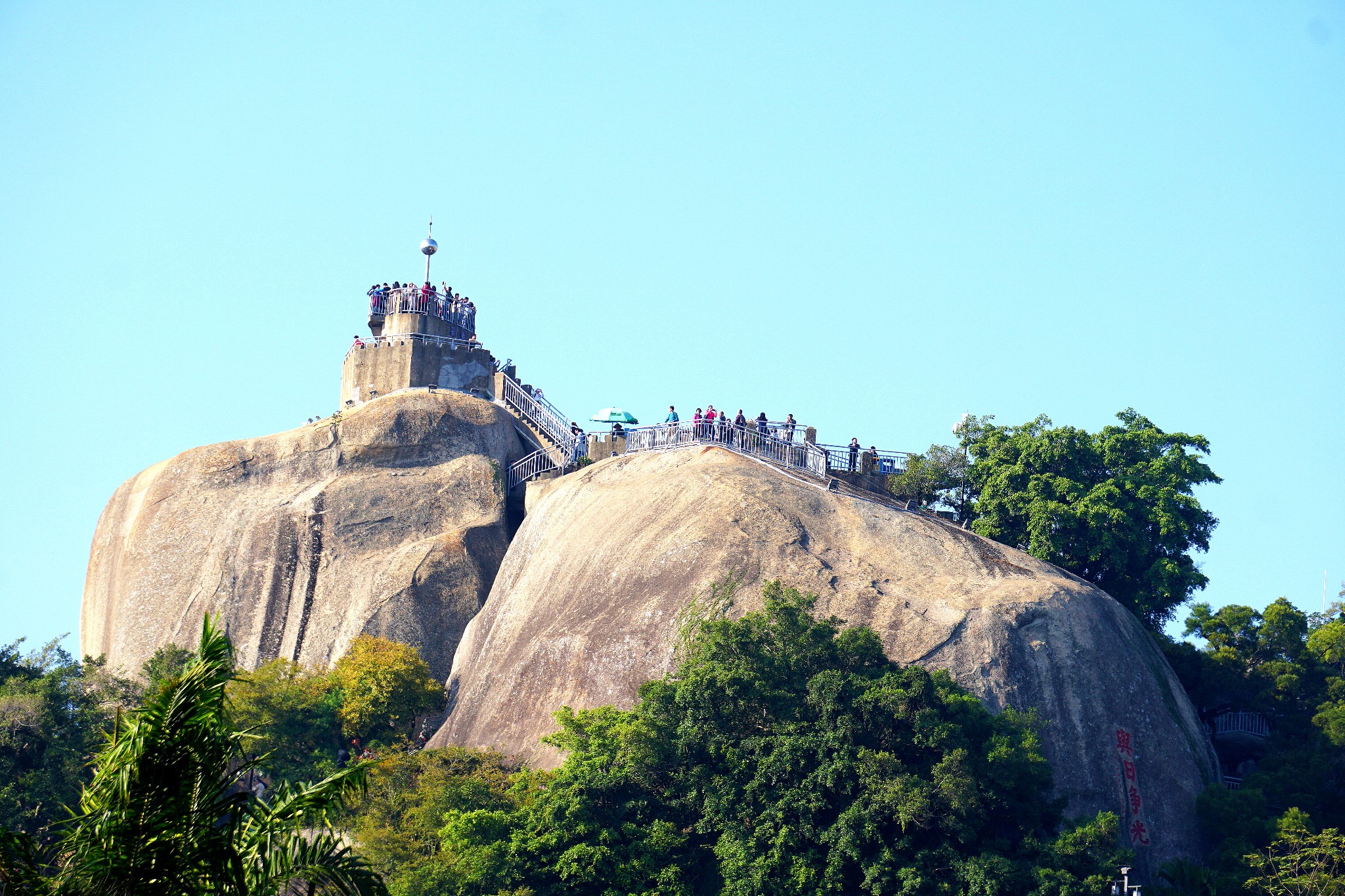 岛子南边的一溜不到二百米的小沙滩,长着几棵高大的椰子树,温度正好合适,很多游客在这里或躺或卧,悠闲的享受着沙滩的宁静。沙滩北面的山头上,一块突出的岩石,就是郑成功命名的日光岩。这位中日混血的英雄,在岛上留下了太多足迹。