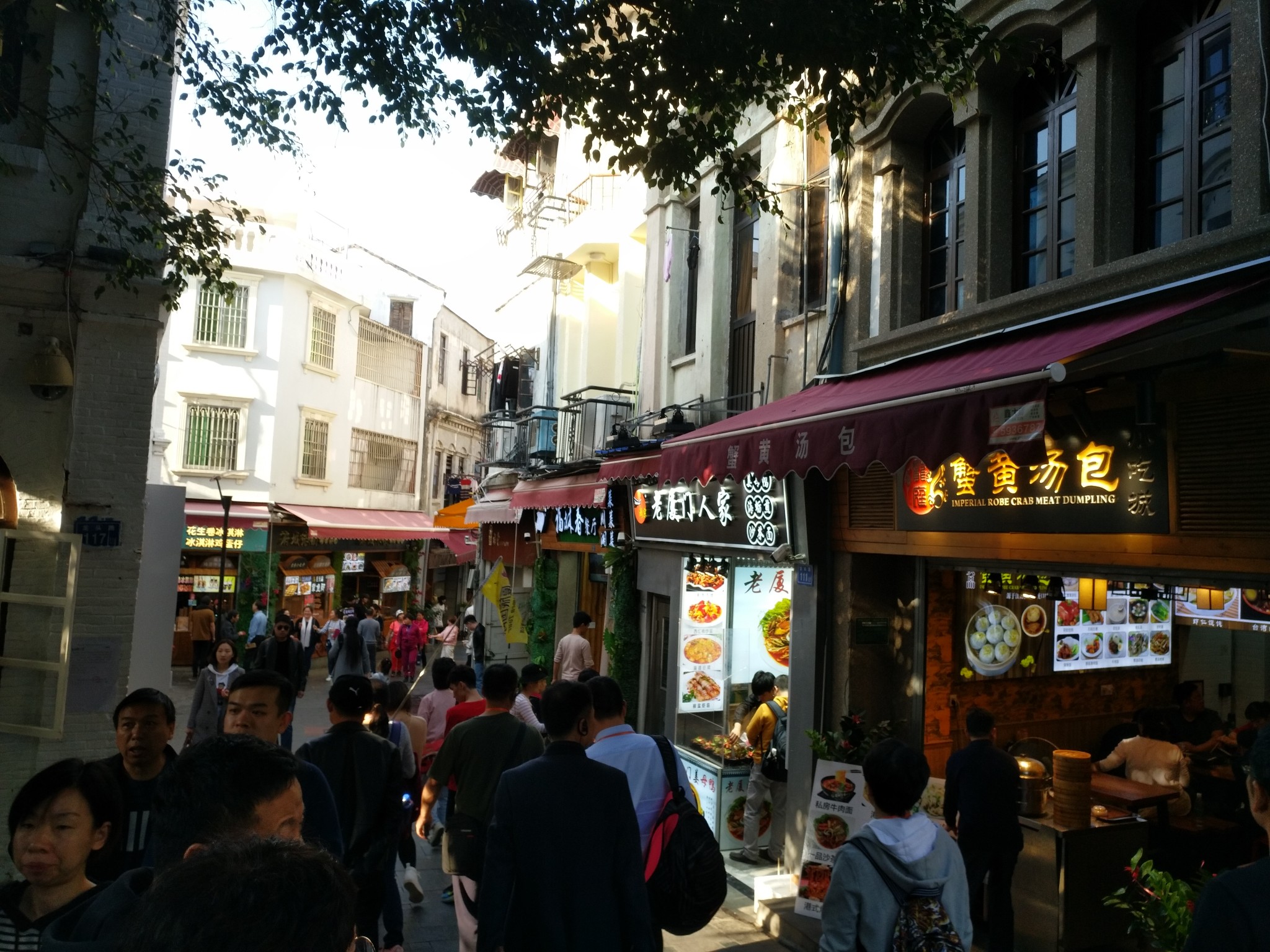 鼓浪屿的小吃街,是岛上最繁华的地方。正是下午的时候,叫卖声、呼喊声此起彼伏。在岛上逛了一天的游客走到这里,买上一碗鱼丸,一串鱿鱼,有滋有味的坐下来,看身边流离的人群,听来来往往的南腔北调,也不失为一种乐趣。