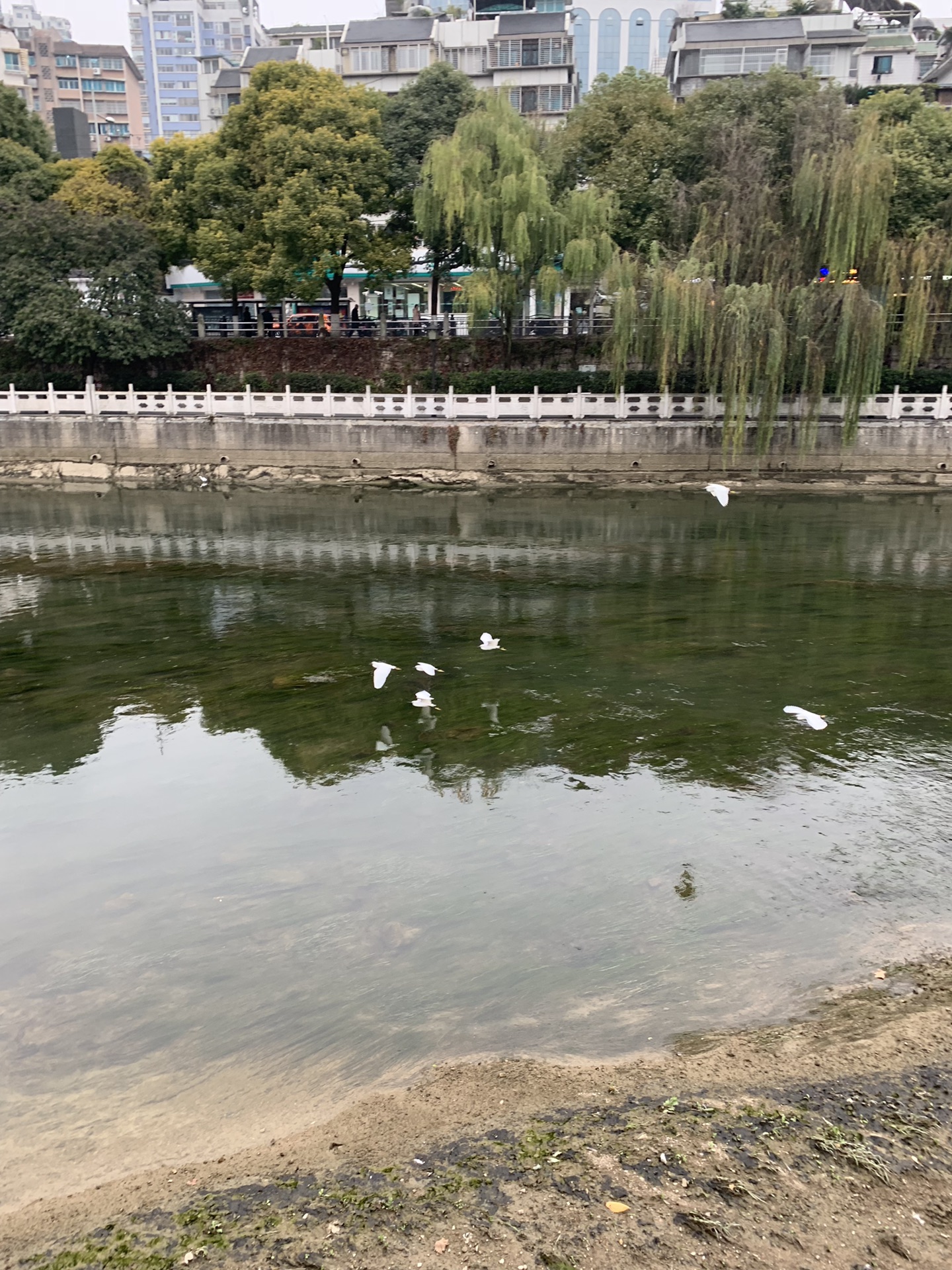 算了,按照计划去甲秀楼吧。过去的时候天还没黑,拍到好多白鹭(?)。
