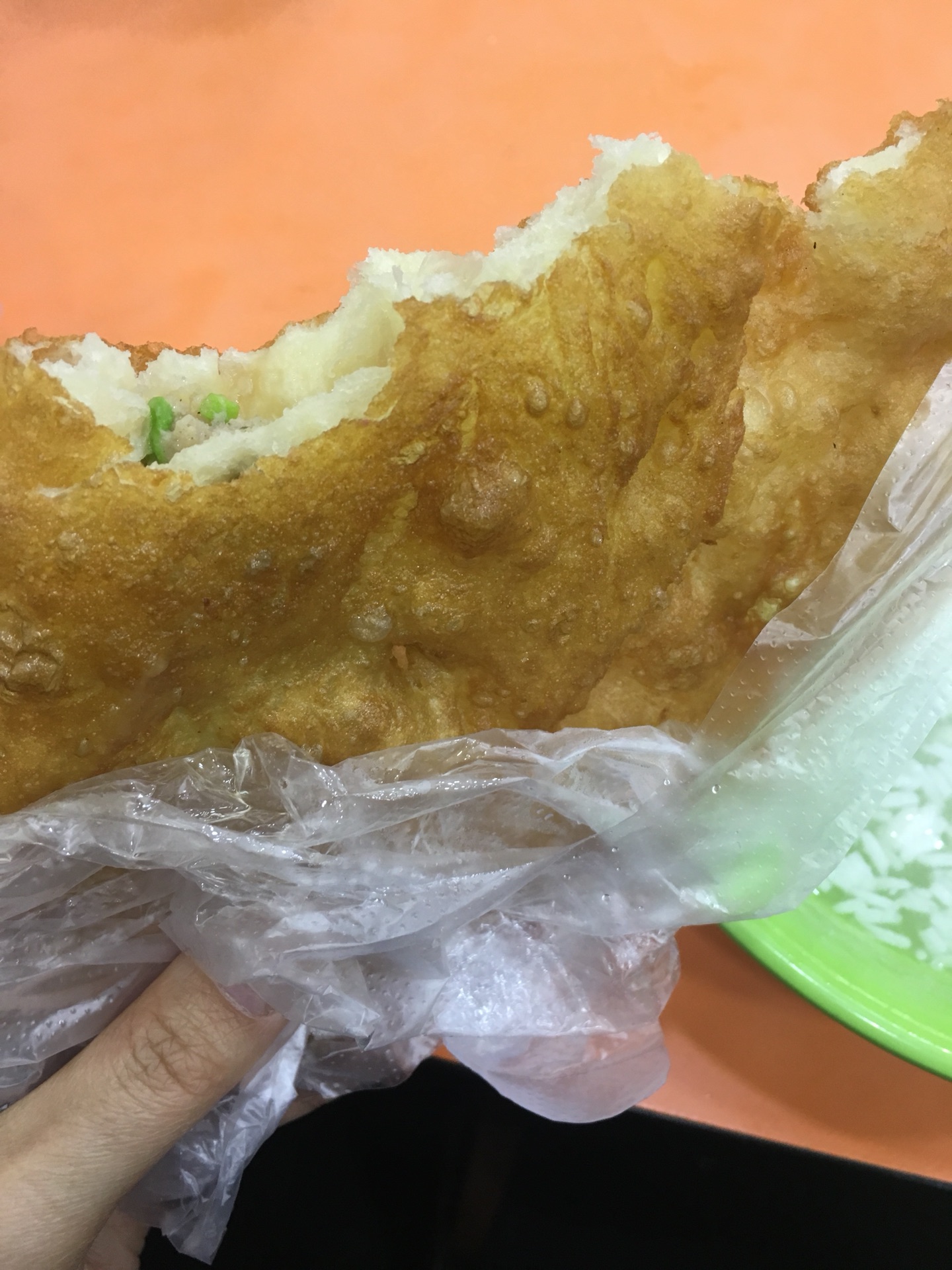 鸡冠饺,也是这家的特色,就是油饼捏成鸡冠子的形状再炸,跟北方油饼不一样的是鸡冠饺里是真的有馅儿的哈哈。