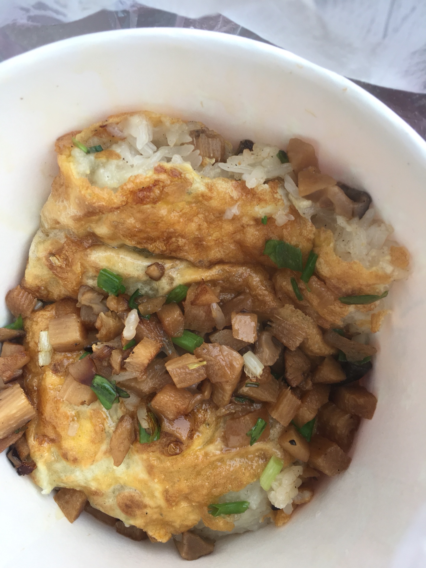 这种看起来不太起眼的食物吃起来没想到那么香啊,豆皮微酥,还有鸡蛋的香气,里面裹着糯米,笋丁肉丁香菇丁,特别入味儿。