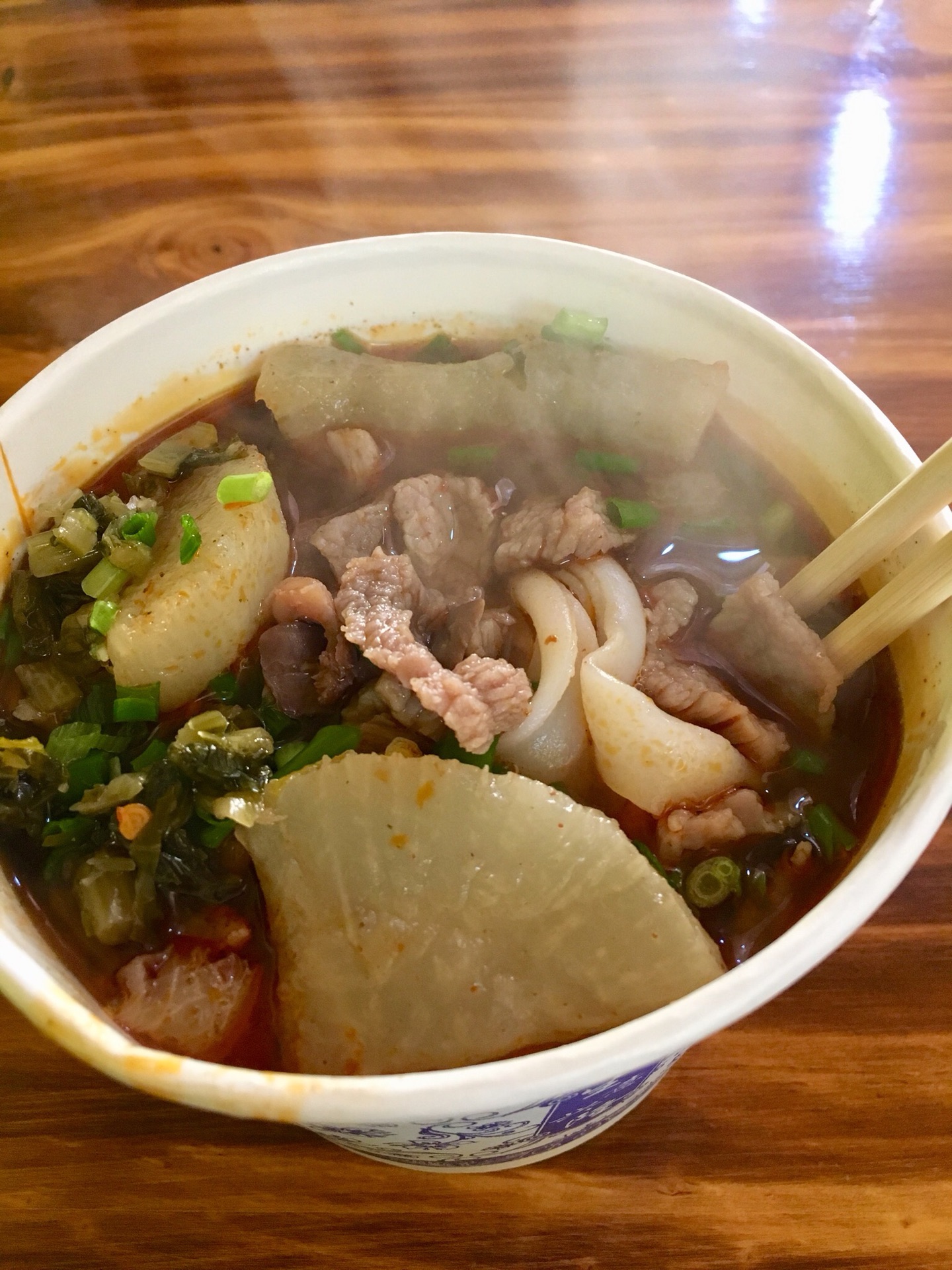 去王记是刚到的下午,饿的不行,店里就俩仨人在吃饭。牛肉粉特别快就做好了,我特意说了微辣,一点点辣,结果端上来一闻就呛的想咳嗽,不过这个辣闻着是特别香啊。
