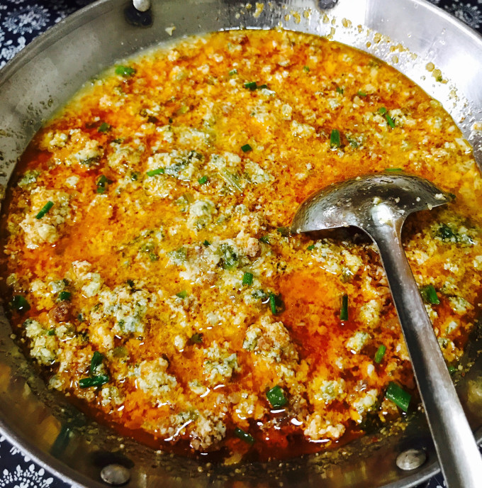 原料为黄豆、白菜等,辅以肉沫、辣椒、小葱等配料,放在酒精炉子上边煮边吃,越煮越入味,非常下饭。 餐馆里一般是30-50元/人,两个火锅加上其他各种配菜,客人只用点除了张关合渣之外的另一个火锅,配菜由餐馆自行搭配。