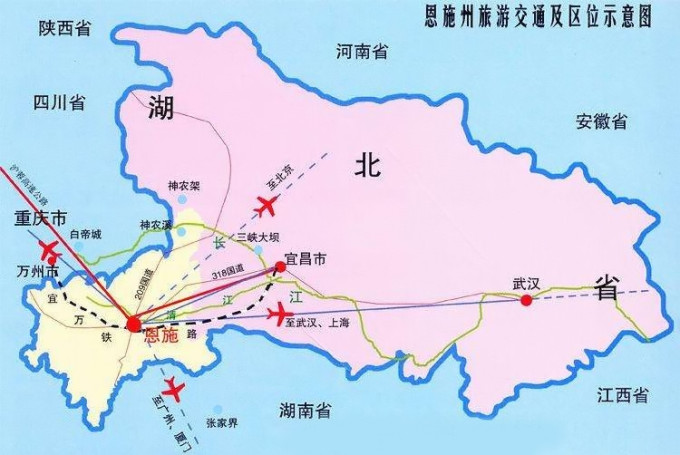 恩施土家族苗族自治州(简称恩施州),是湖北省唯一的少数民族自治州,位于湖北省西南部,地处鄂、湘、渝三省(市)交汇处,美丽的318国道和神秘的北纬30度从中穿过,森林覆盖率近70%,享有“鄂西林海”、 “华中药库”、 “烟草王国”、“世界硒都”之称。西连重庆市黔江区,北邻重庆市万州区,南与湖南湘西土家族苗族自治州接壤,东连本省的神农架林区,宜昌市,地处武汉和重庆两大“火炉”之间,是最适宜人类居住的地区之一。