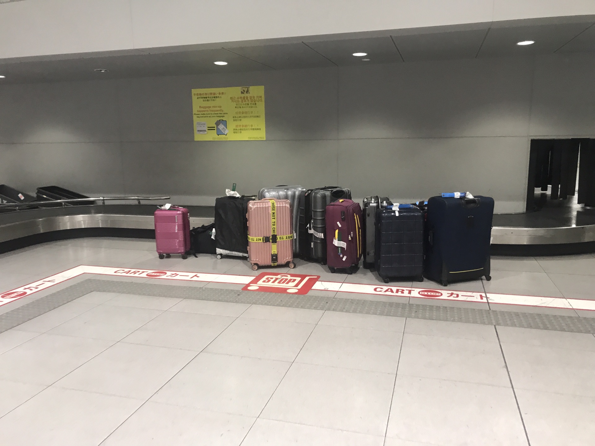 机场依旧是把行李拿下放好~你自己根本不可能去取行李,因为地面写着STOP!工作人员也会很礼貌的让你不要碰~