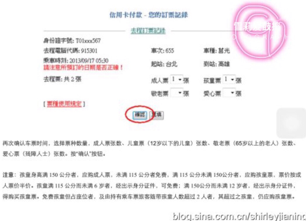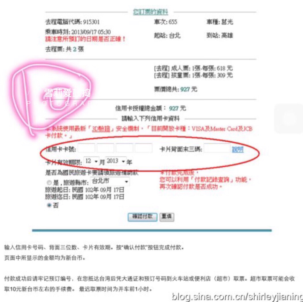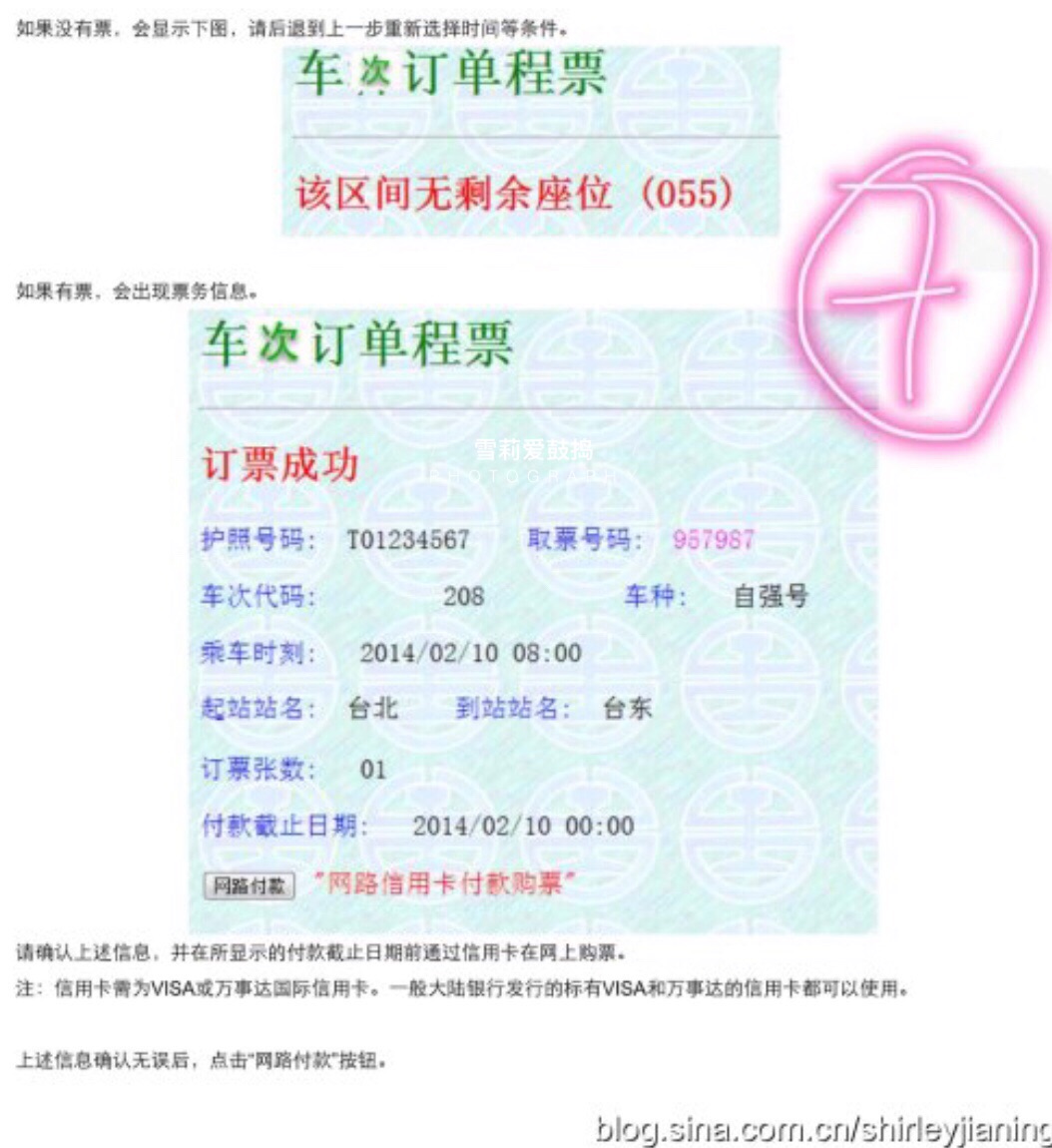台铁网络订票有95折优惠,订票后,会给一个“电脑代码”,凭此码使用信用卡付款和出票。最好打印出来,方便取票。