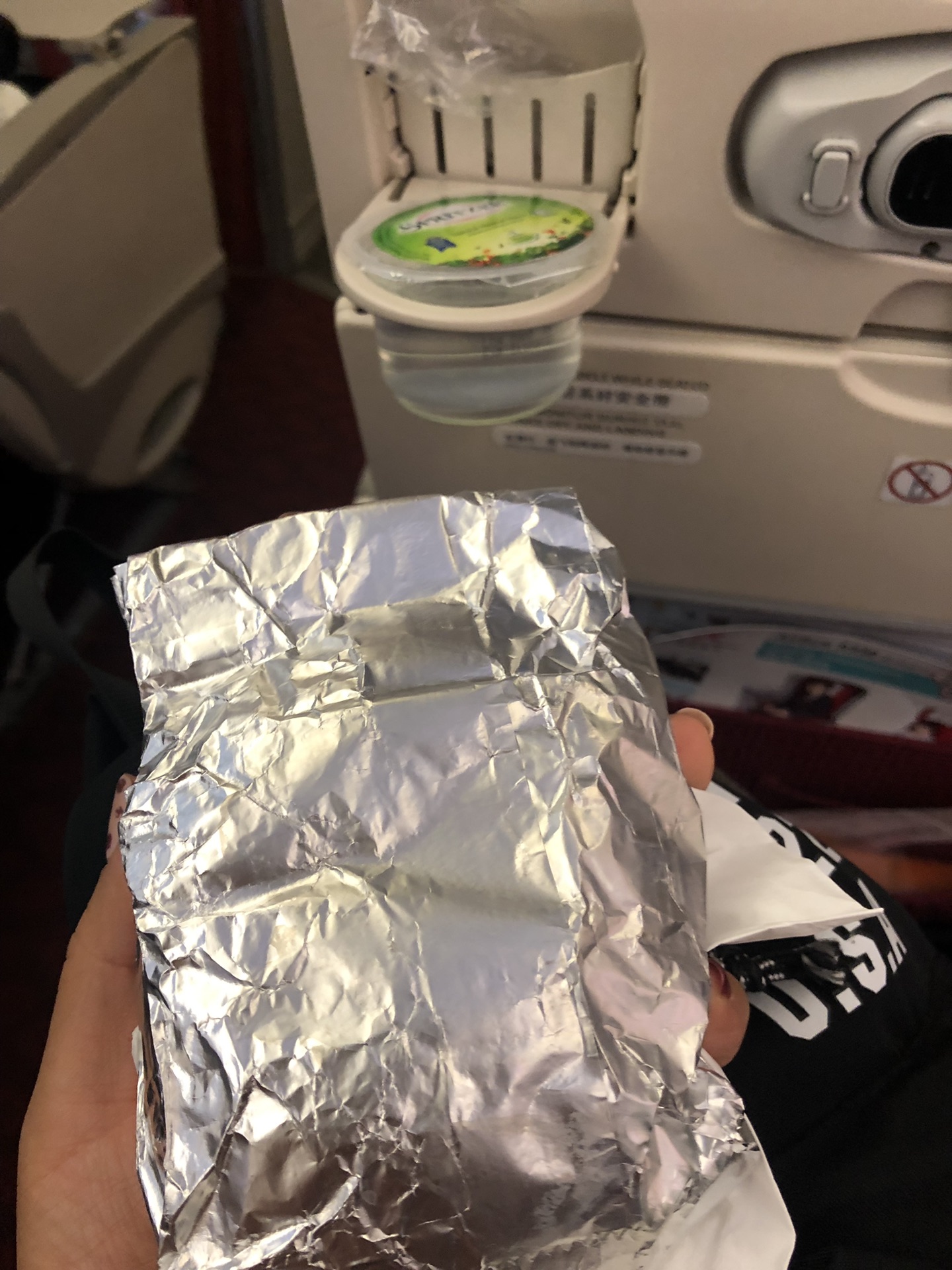 就这样开始了下一程,飞到了 台北 桃园 机场2号航站楼。第二程的餐只有一个 汉堡 ,我很饿!!!