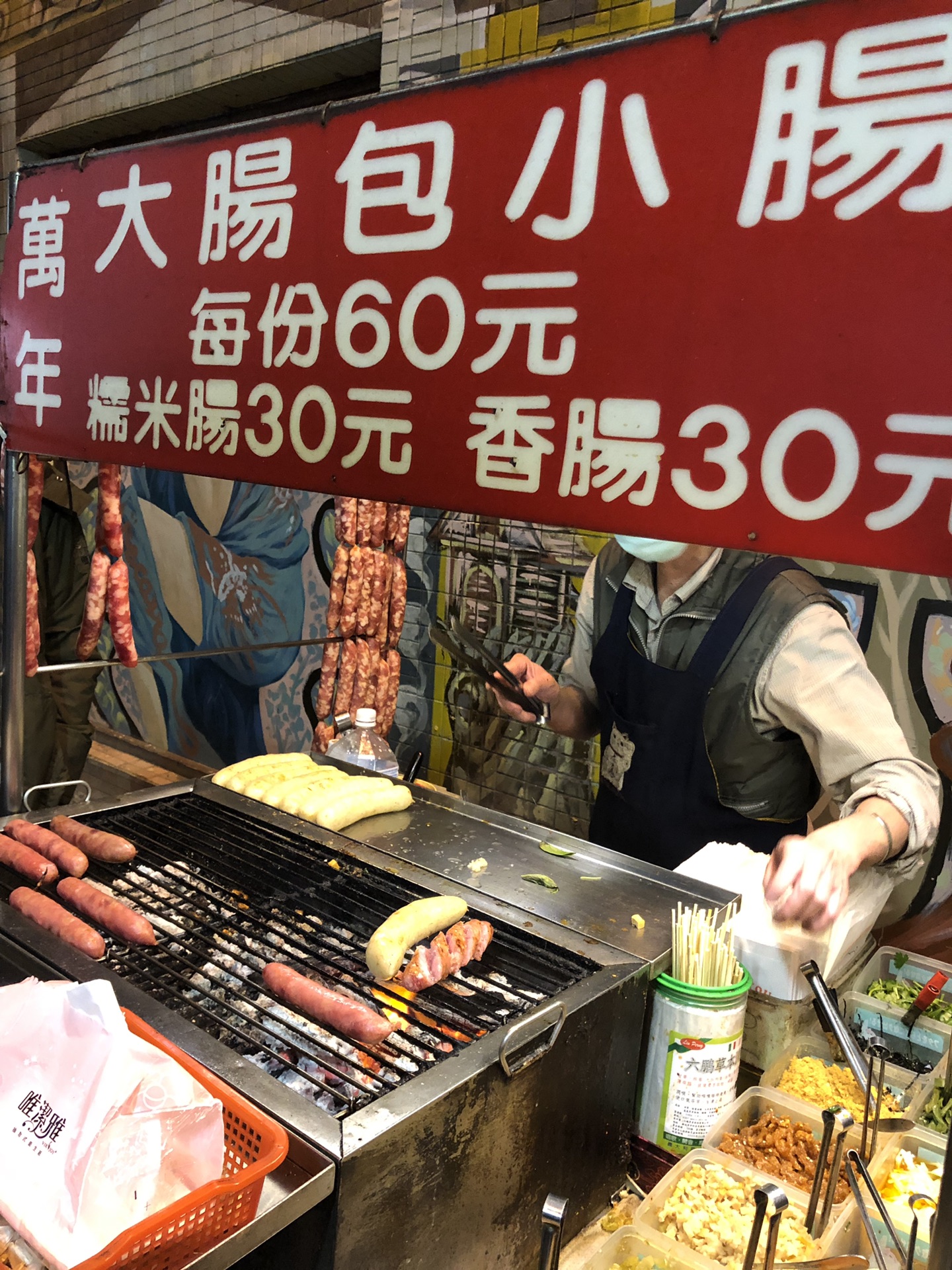 又遇到了卖大肠包小肠的小摊子,阿伯超认真的!