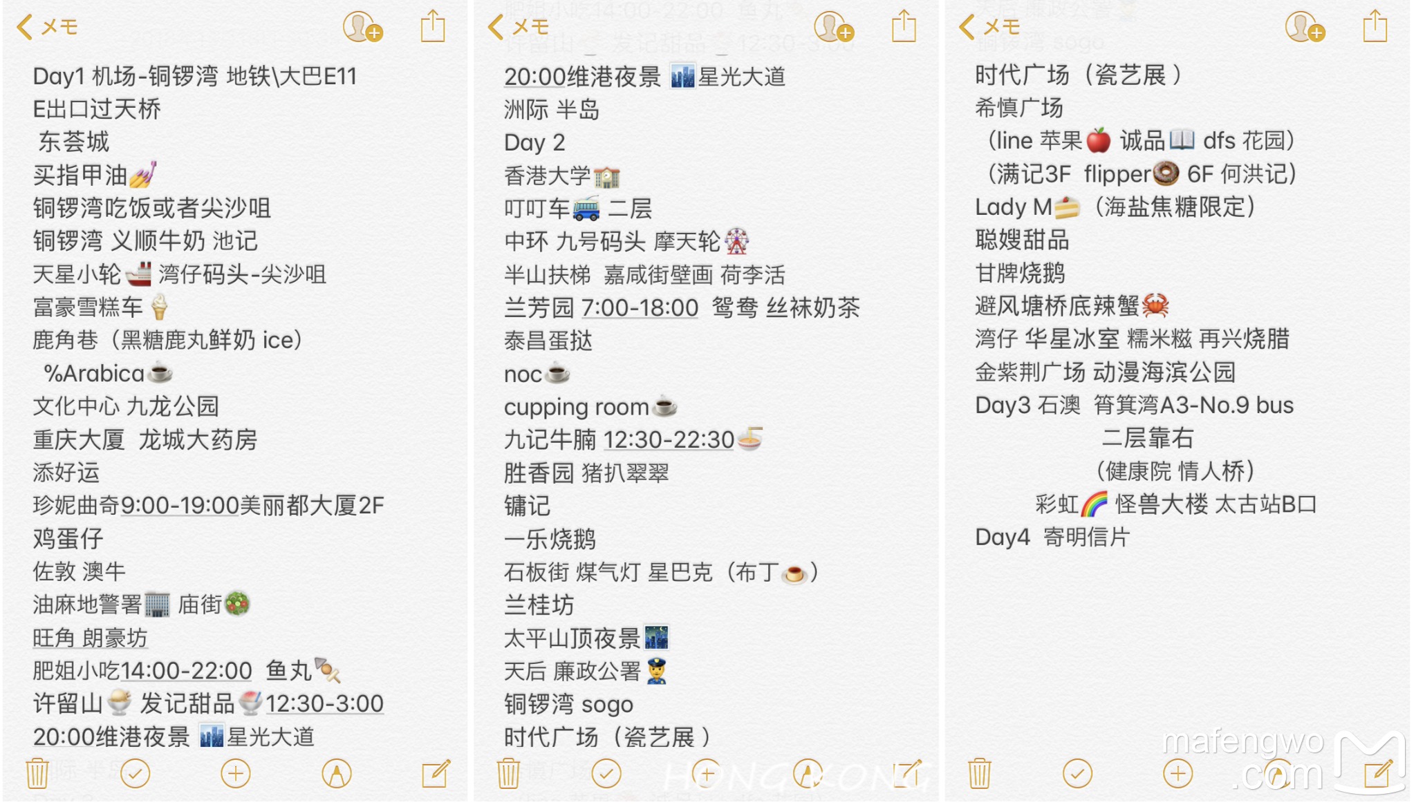 一直都说HK是弹丸之地,但可以玩的地方还蛮多的,上次的行程比较经典,还加上了澳门,这次走了一些很市井、很郊外、很网红的地方,解锁了HK很不一样的一面,发现了它隐藏的魅力值,变得更喜欢这个地方了~