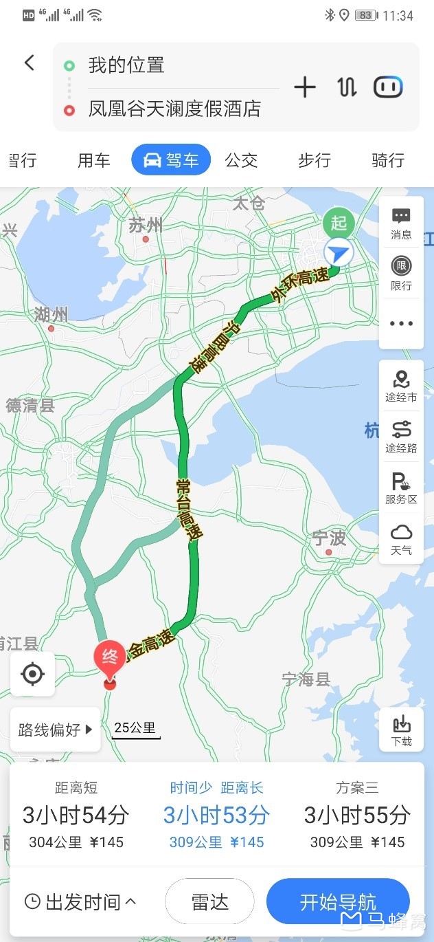 10月1日上海浦东→浙江东阳县凤凰谷天澜度假酒店(选择中途休整是因为考虑堵车因素和驾驶安全)
