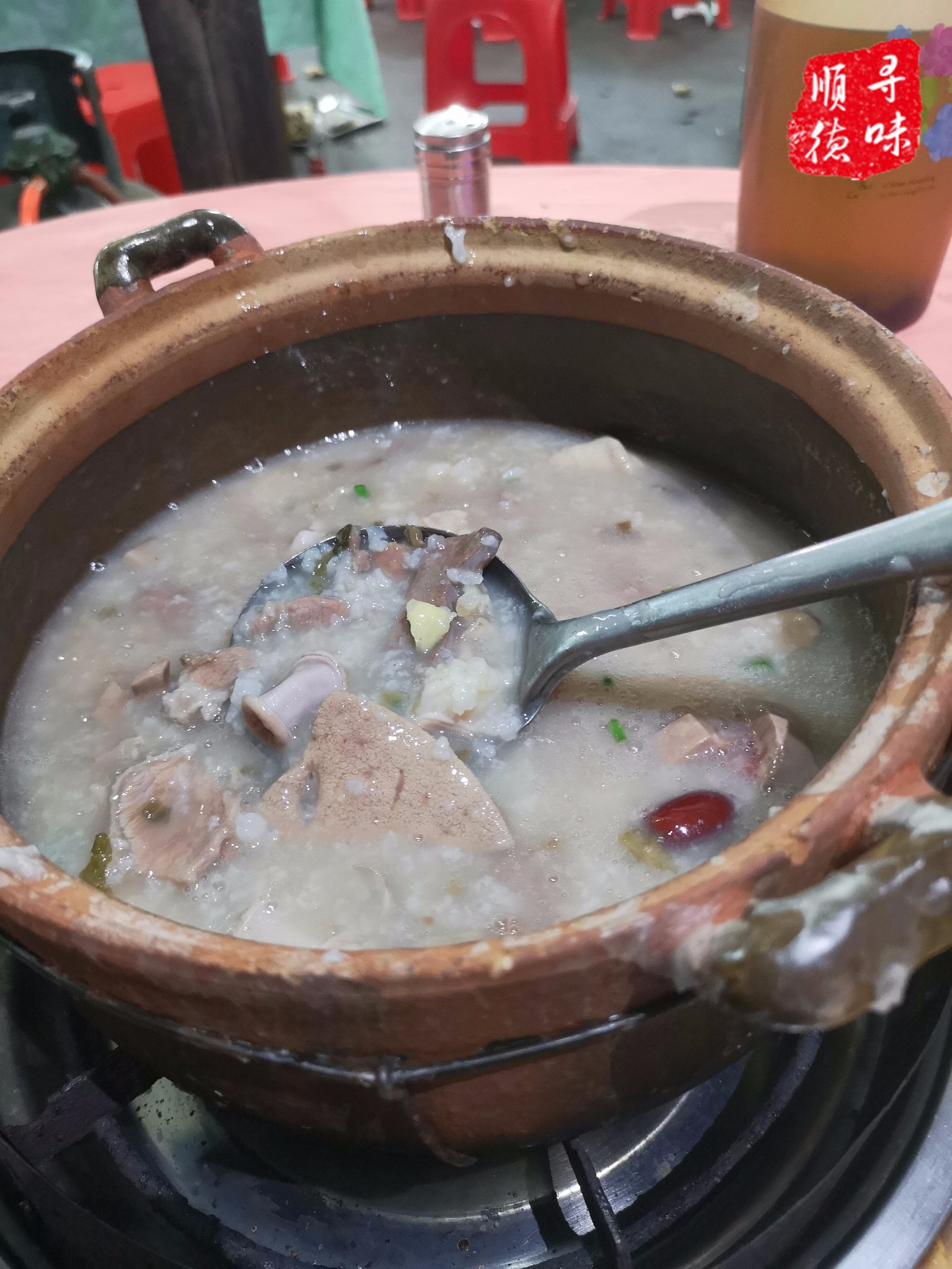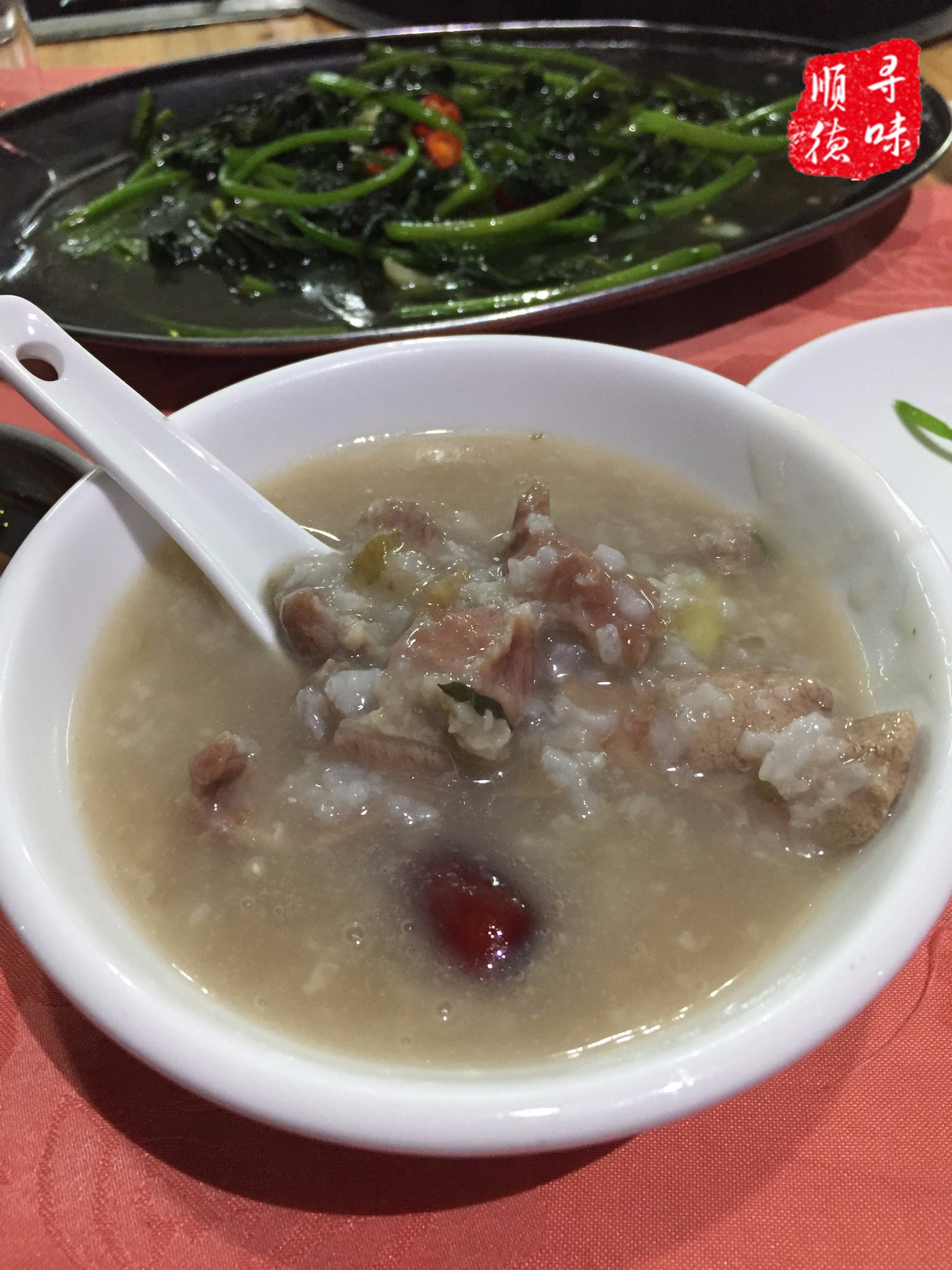 喝到最后粥显得有些咸,赠送的猪血汤也没留下太多印象,