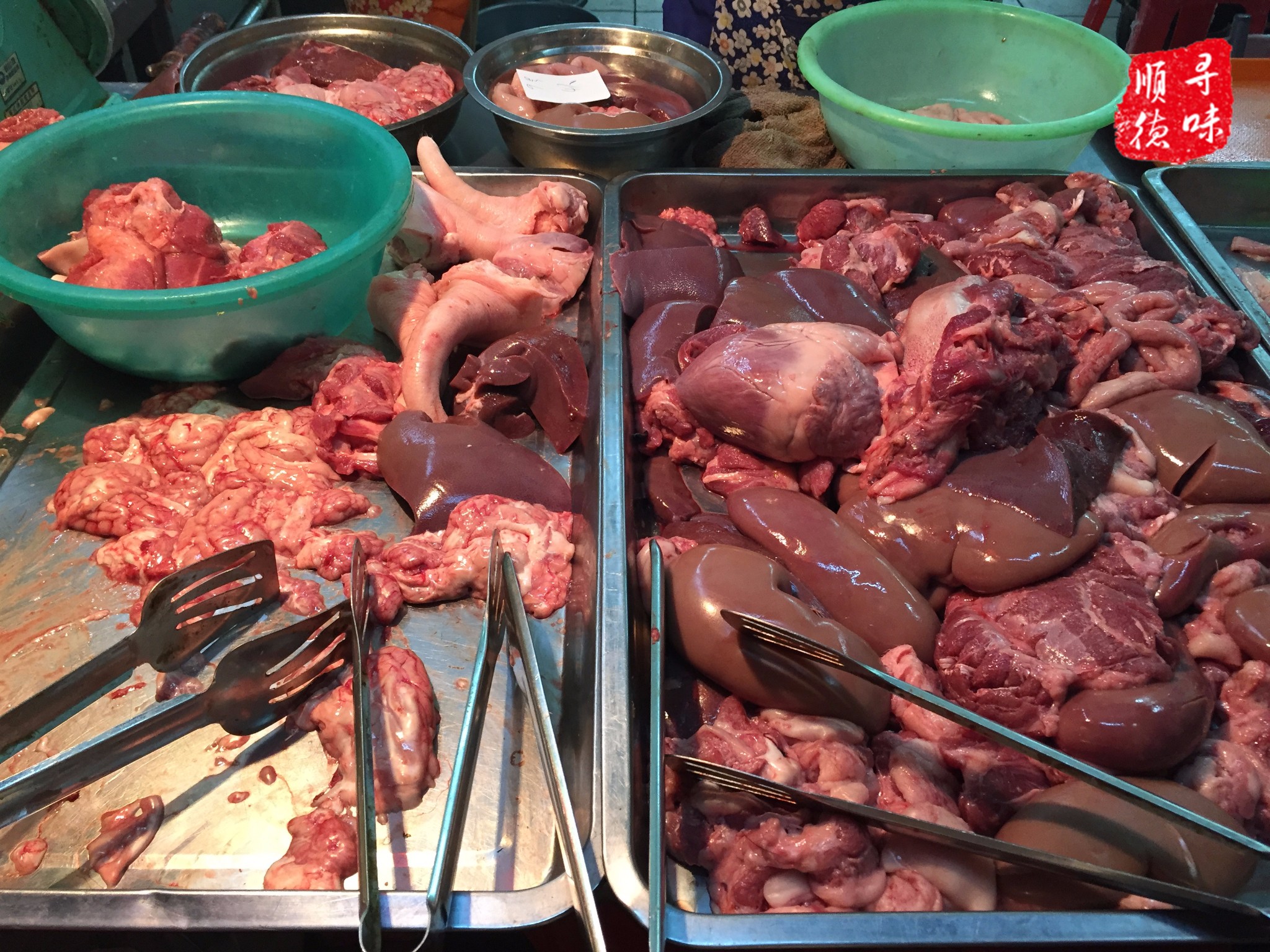 最多的是猪肝、猪腰、猪肠和猪颈肉,