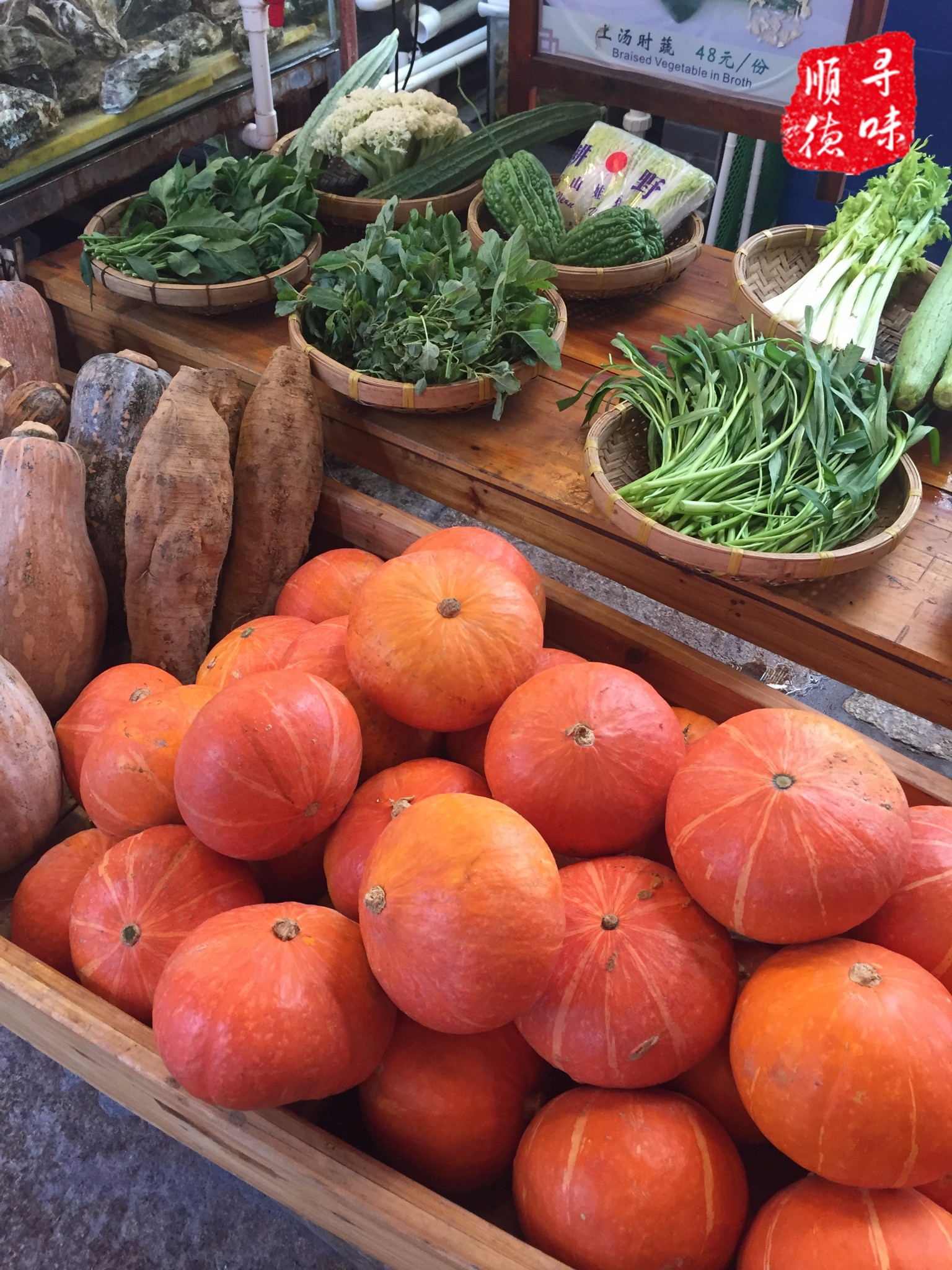 各种生猛海鲜、明炉烤档、煲汤瓦罐、新鲜蔬菜,