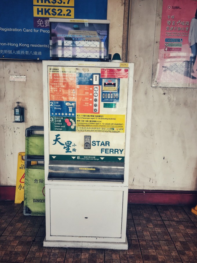 穿过香港文化中心和钟楼,右手边就是尖沙咀天星码头。由尖沙咀开往中环和湾仔两个方向。用自助投币机购买船票,2.7元港币。班次也多,船来了就上,并不会很满。后来体验了香港上下班高峰期的过海地铁后,我觉得天星小轮性价比非常高,在忙碌的城市有那么一程时间可以停下步伐眺望维港两岸。