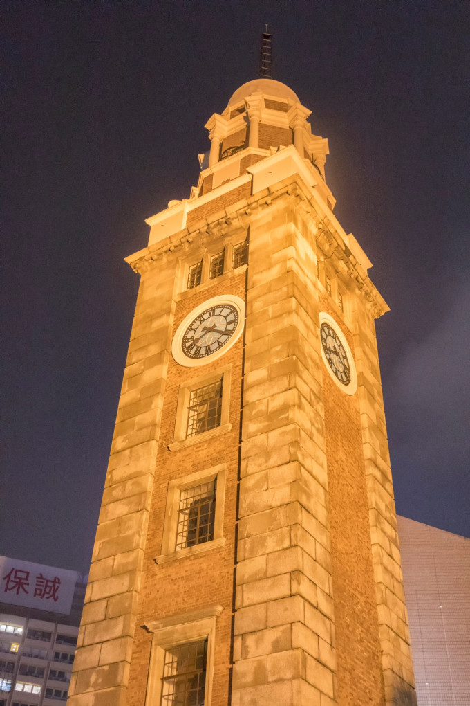 香港文化中心的外走廊也是网红打卡地,特殊的斜角外柱加上一排光线的射入,形成的光影效果适合拍出有意境的照片。而旁边的钟楼,有着百年历史,高45米,建于1915年,是原九龙火车站旧址。
