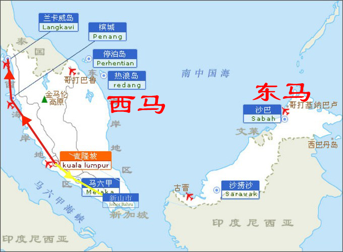 西马有首都吉隆坡、兰卡威、槟城、马六甲等