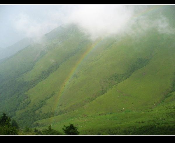“不经历风雨,怎能见彩虹”------这么近的看到彩虹,我们一行四人都大声叫喊着,冒雨拿出DC拍了一张