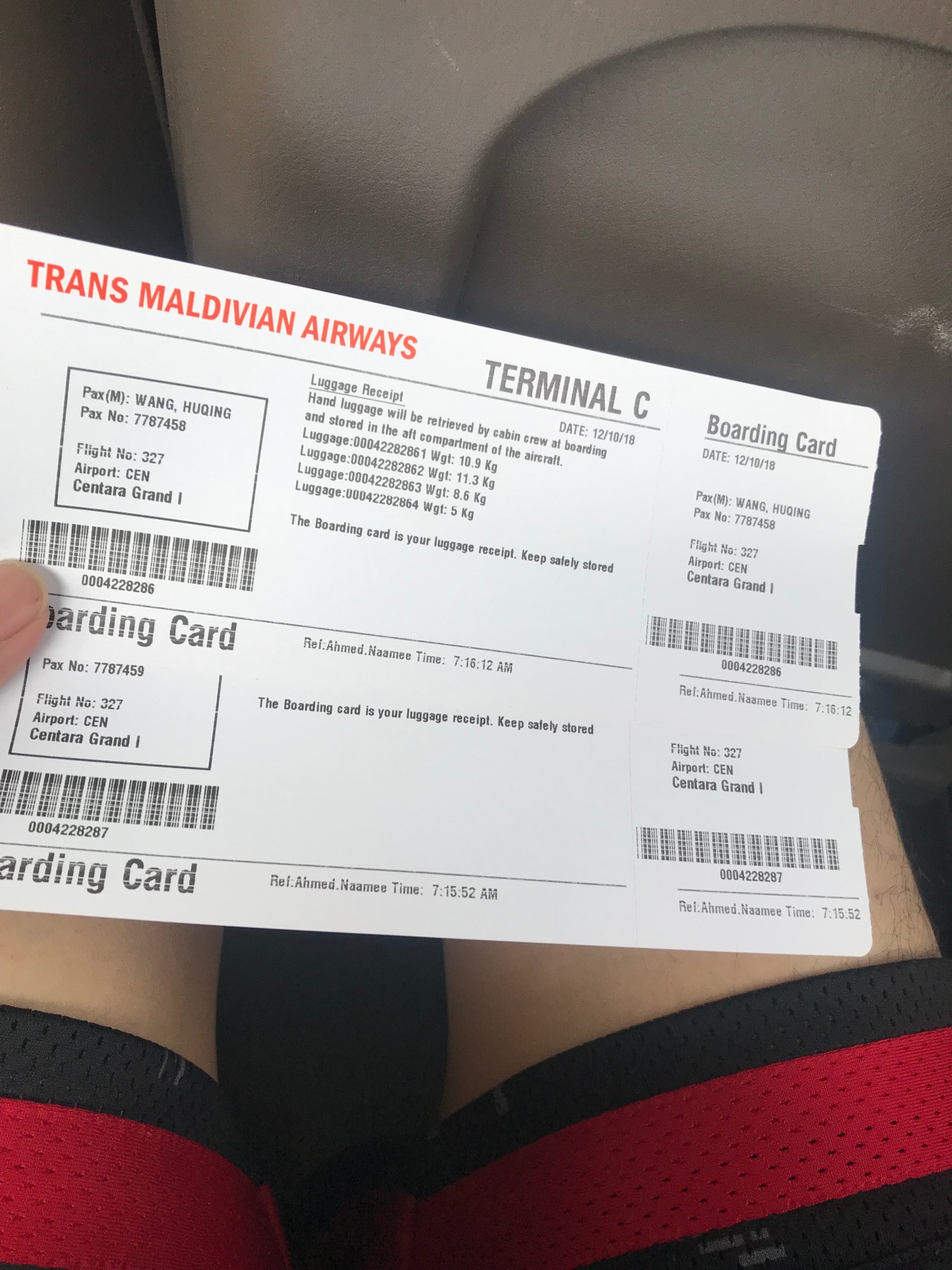 12月14号 MU236马累——上海19:05(马尔代夫时间)---05:35+1