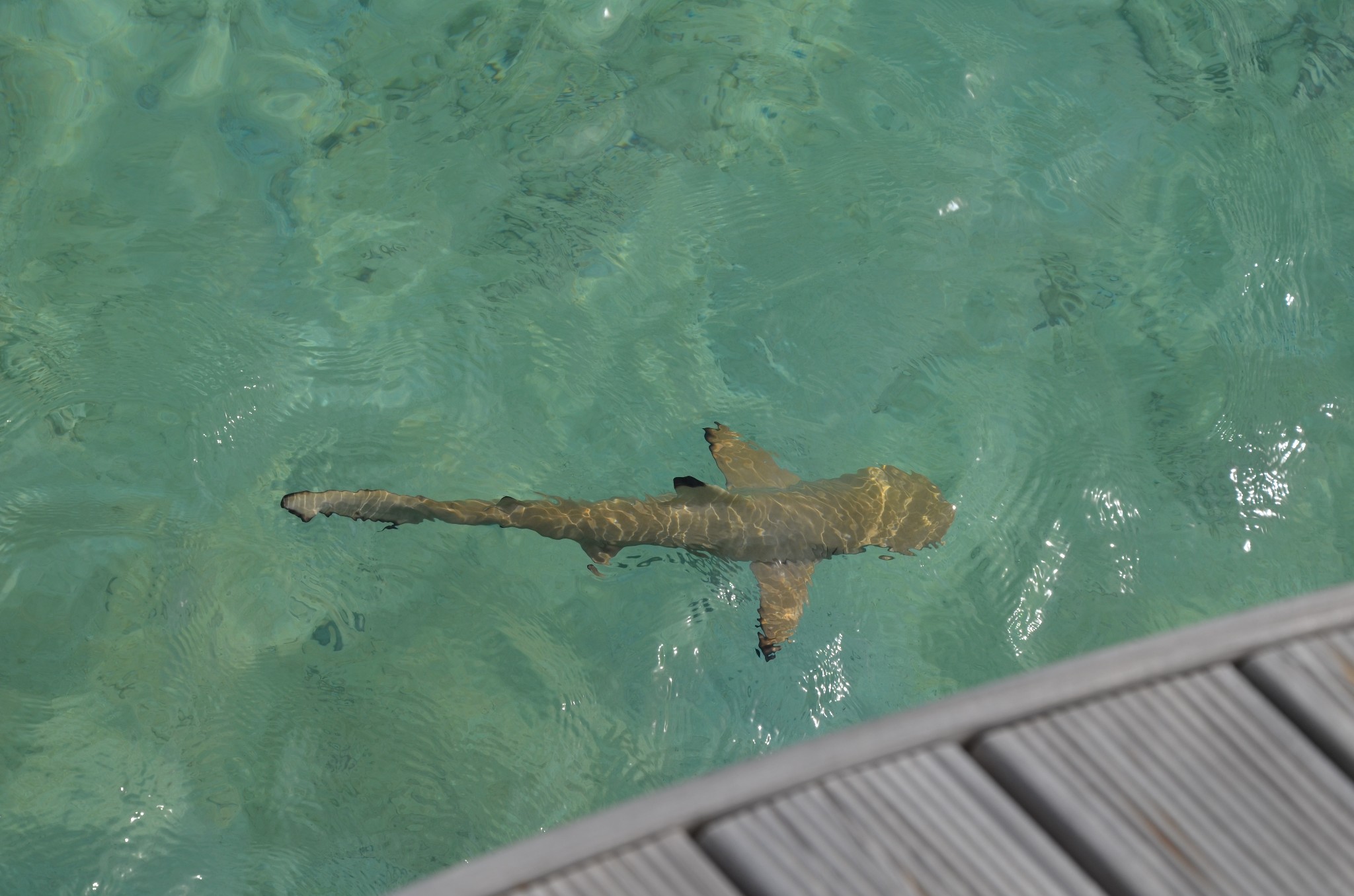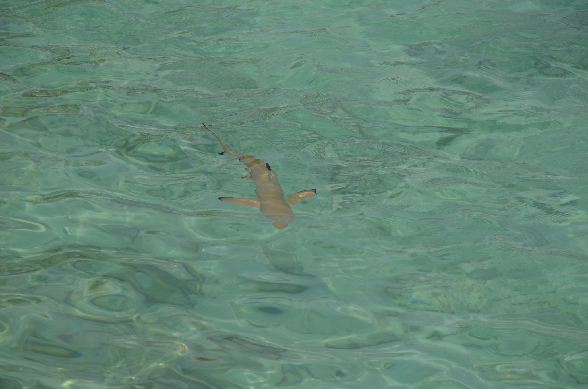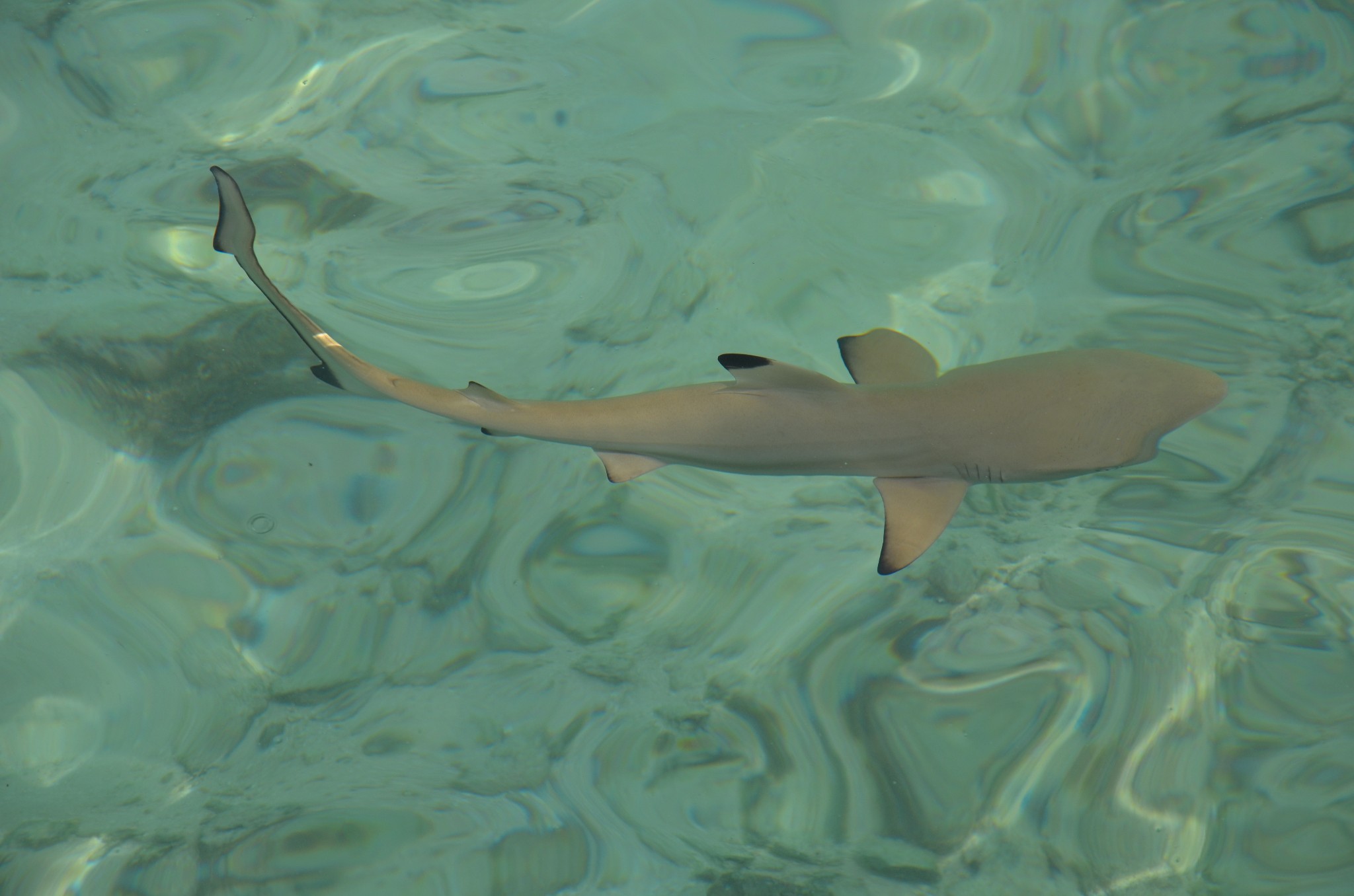 沙滩边上浅水区域好多这种黑鳍鲨~~很可爱~怕人~一靠近它就快速游开了~~