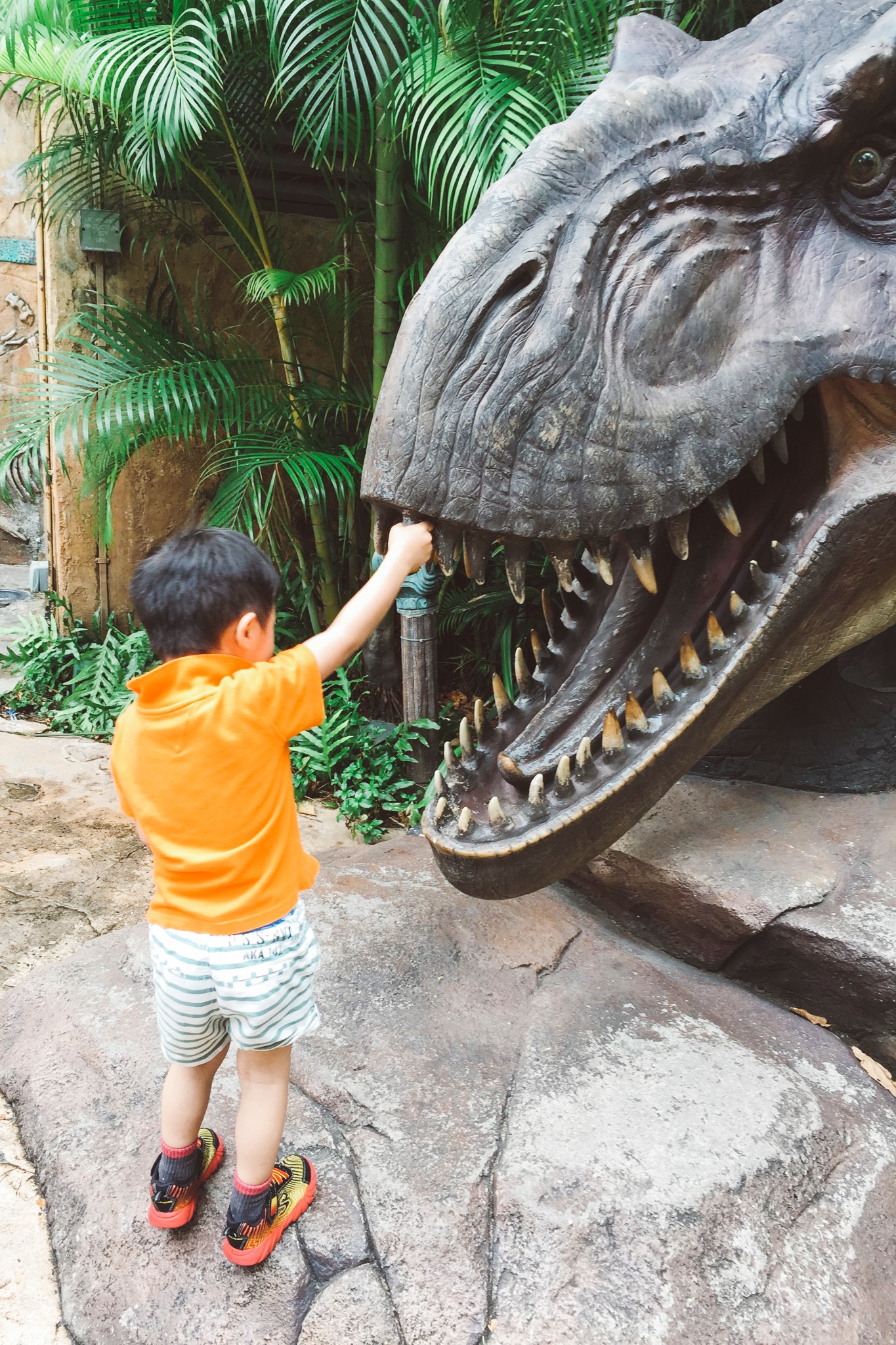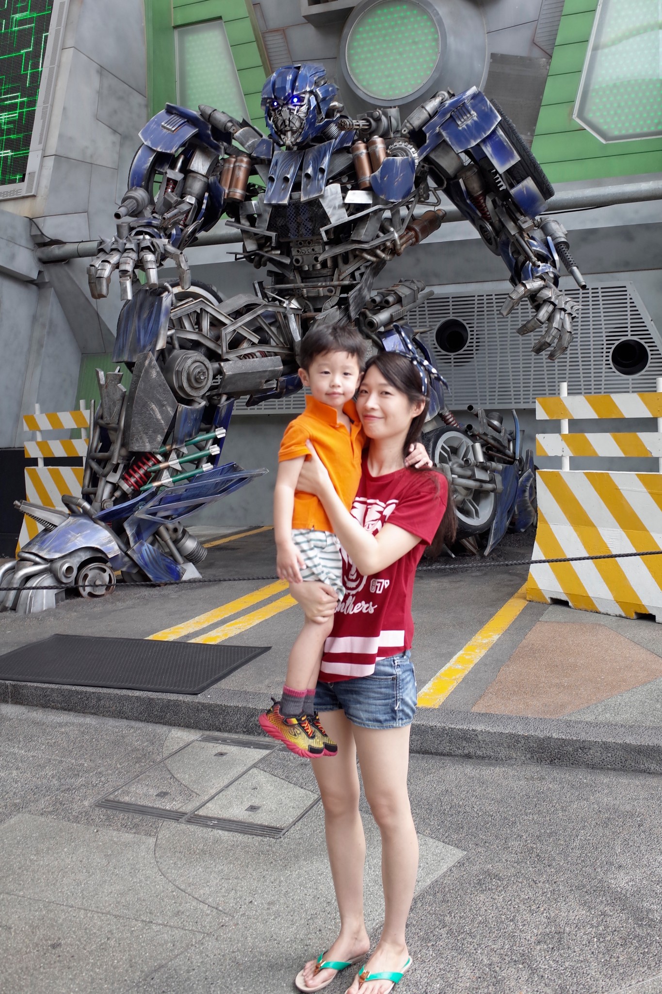 【新加坡环球影城Universal Studios Singapore】带孩子出去简单也是简单,早上去游乐园,下午睡午觉,晚上去吃饭。基本就是这个套路,新加坡环球影城建成已经有点时间了(2010年3月18日正式开放),电影迷一定不能错过它,它是东南亚首个和唯一的环球影城主题公园。新加坡环球影城总共设有24个游乐设施和景点,包括古埃及、失落的世界和好莱坞大道等七个主题区,儿子最喜欢的当然是变型金刚。可惜的是,这边的娱乐项目很多都有身高限制,3岁的儿子可以玩乐的项目还不多。倒是在侏罗纪区,工作人员手上抱着一个电动的三角龙,能够摆动尾巴发出叫声,小孩子还分不清真假,一下子就被吓哭了。