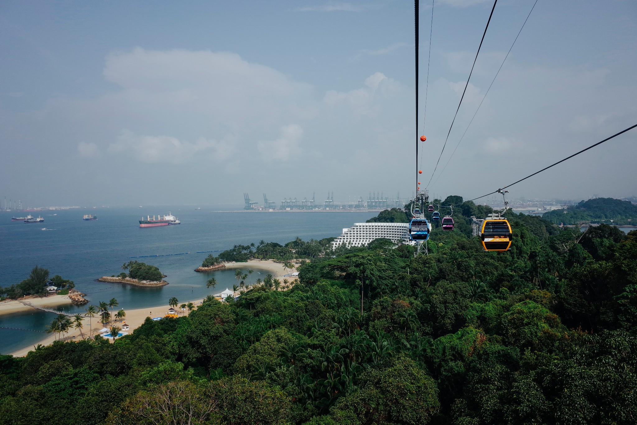【圣淘沙缆车】圣淘沙这边除了去往主岛的轻轨外,还有一种在空中的交通工具,就是缆车。香格里拉酒店外面有一片公共沙滩,人也不多,小孩子么给一堆沙子就能玩一下午,又是踩水又是爬船的,高兴坏了。