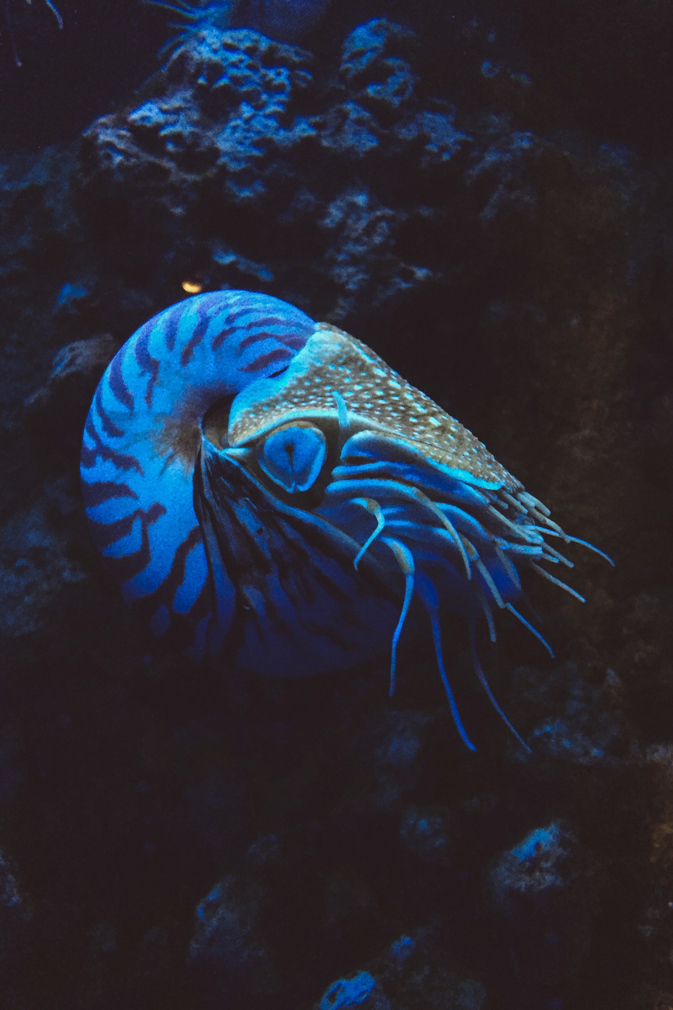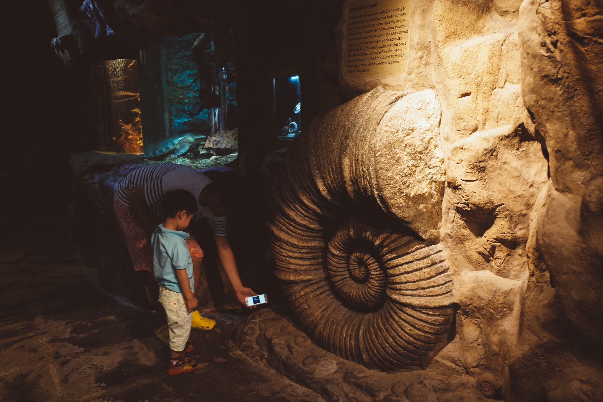 我个人觉得最有意思的是里面一个叫做鹦鹉螺(Nautiloidea)的海洋软体动物,鹦鹉螺已经在地球上经历了数亿年的演变,但外形、习性等变化很小,被称作海洋中的“活化石”,漂亮的是其黄金分割的身体结构,具有完美的对称图案,据说有一颗4.6亿年前的鹦鹉螺化石长达15米!所以,我一直以为鹦鹉螺这种动物只会出现在教科书上面,没想到在新加坡海洋馆见到了活的。
