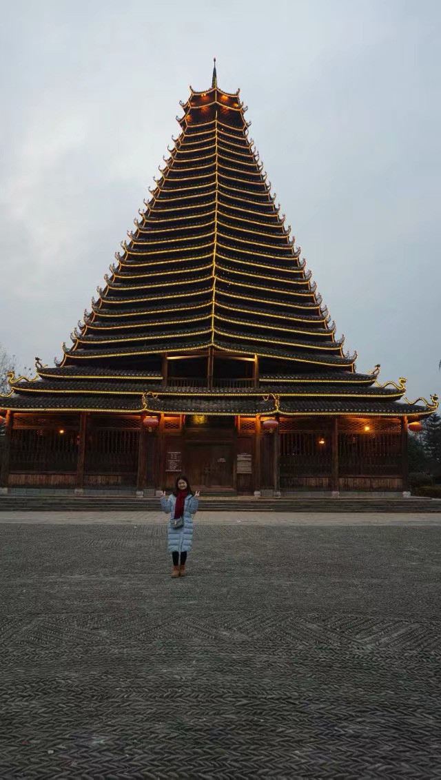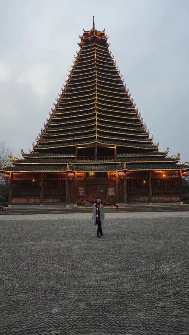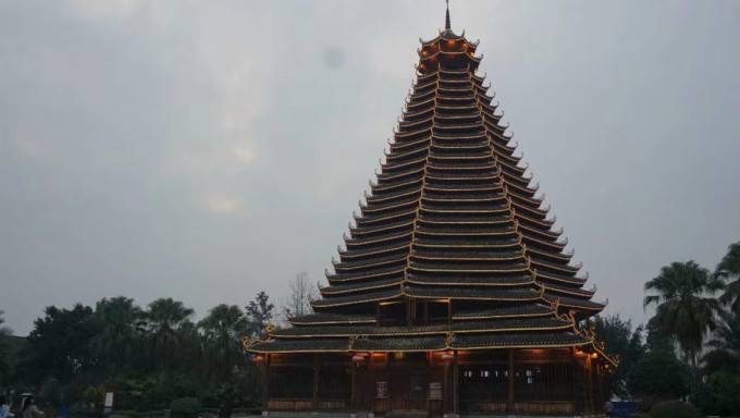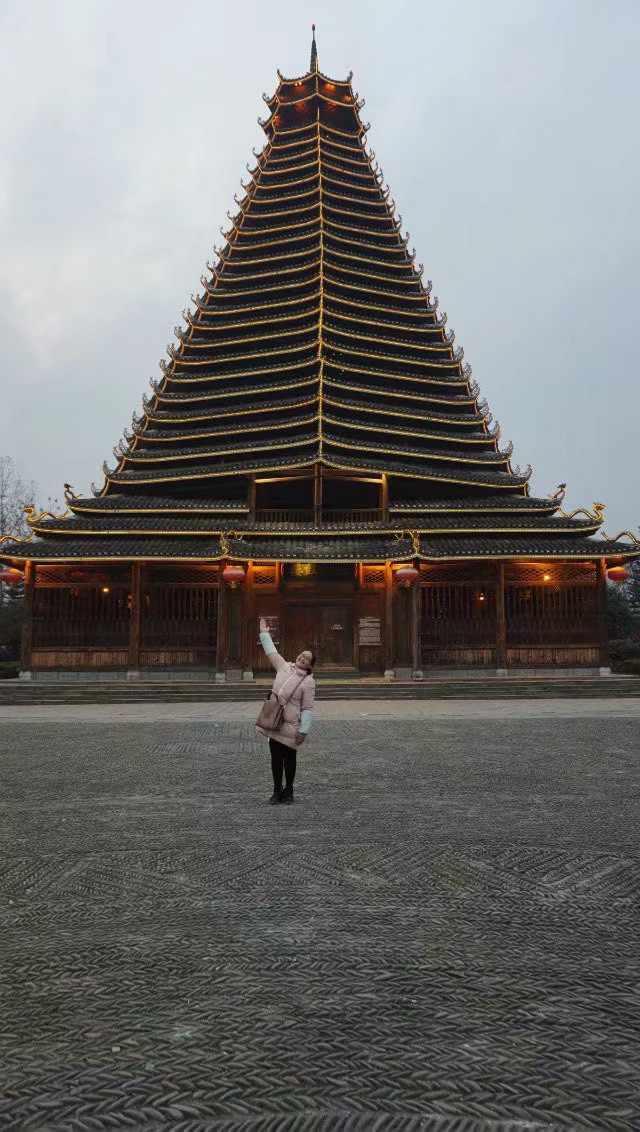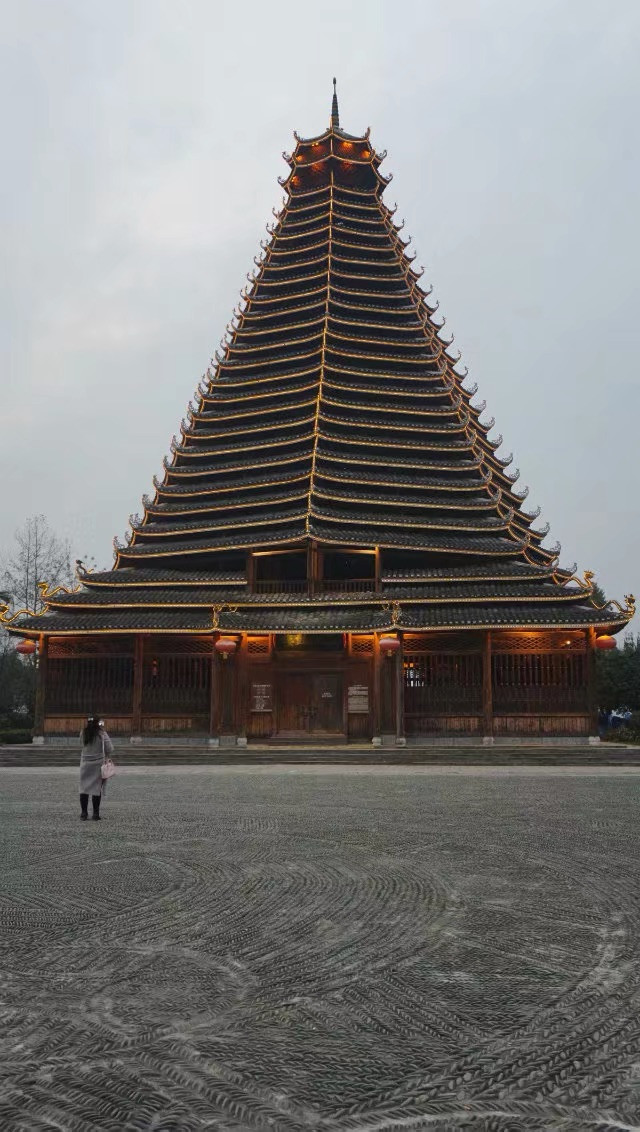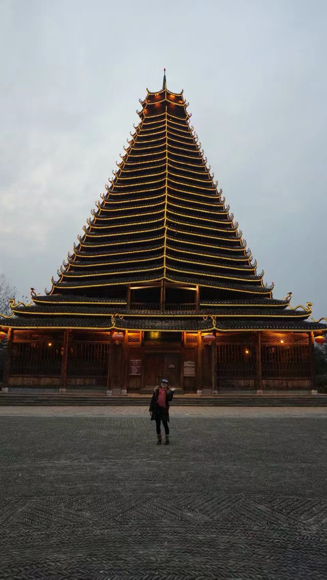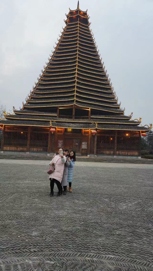 这是三江县的鼓楼下面