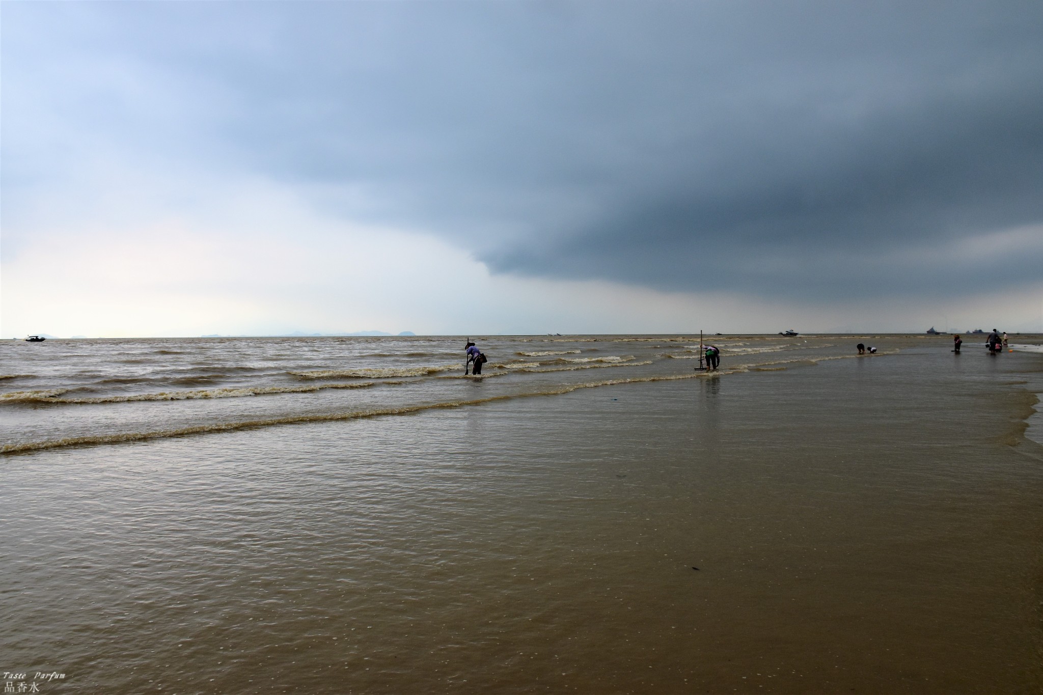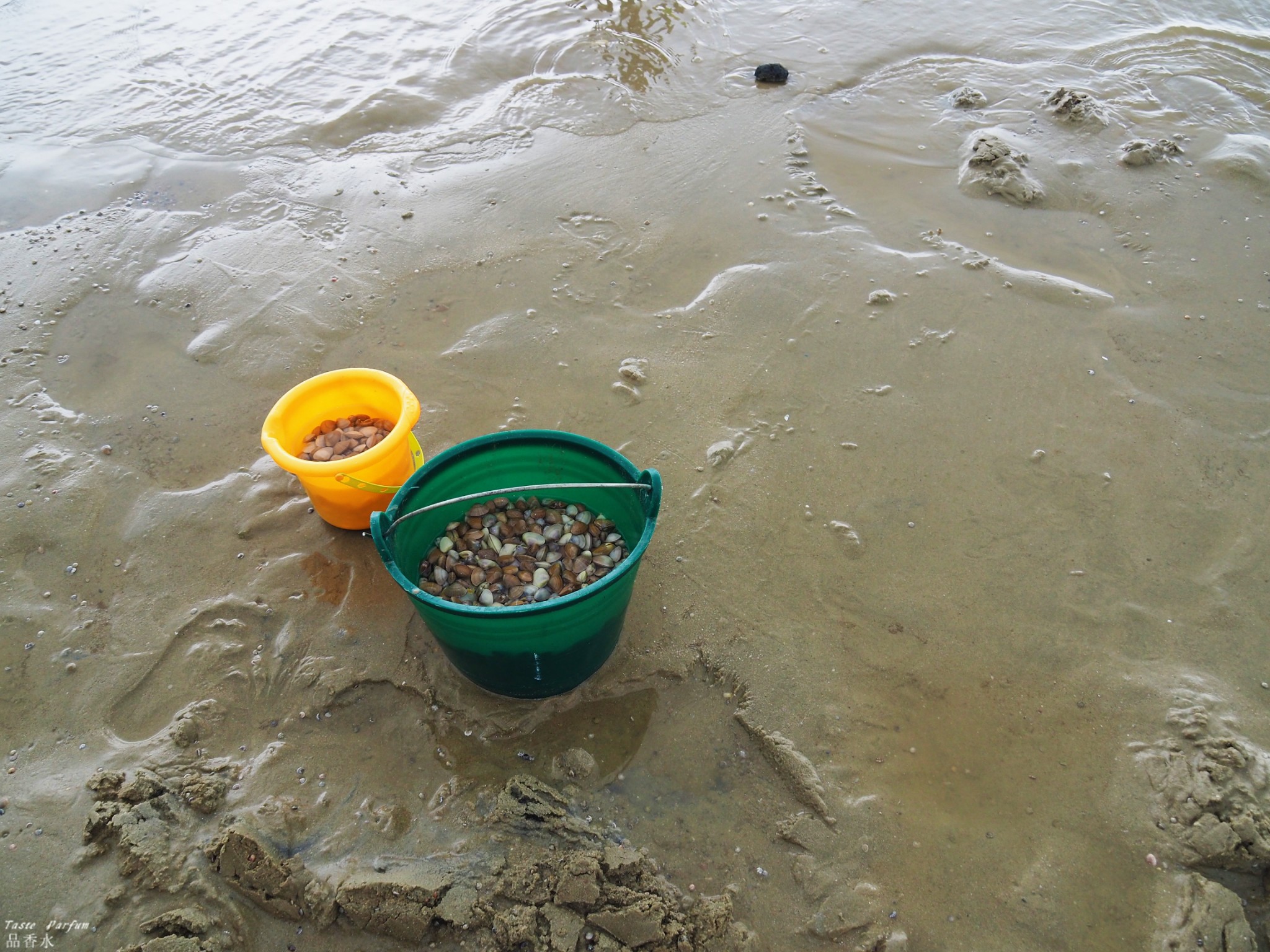很多渔民在挖螺和贝壳,大多是女性。
