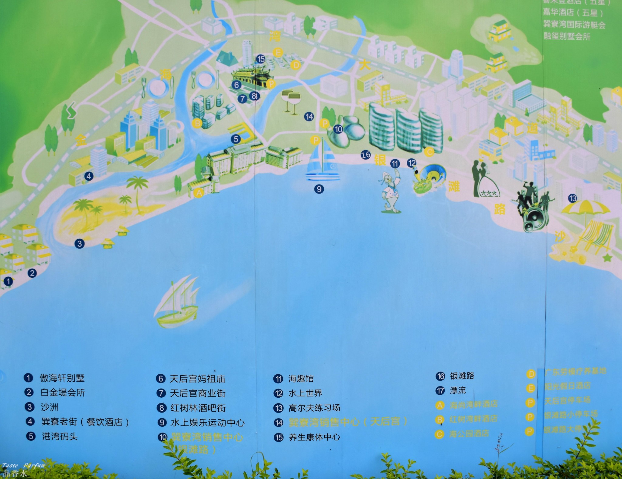 事实上海边的几栋公寓楼分包给了不同的公司经营, 就是大家都住在同一个楼群的不同酒店里。我们住的叫东南湾度假酒店,选择它的原因就是图方便,而且附近其他酒店都有不少差评,而这家没有,应该说当时还没有,应该是刚被承包不久。