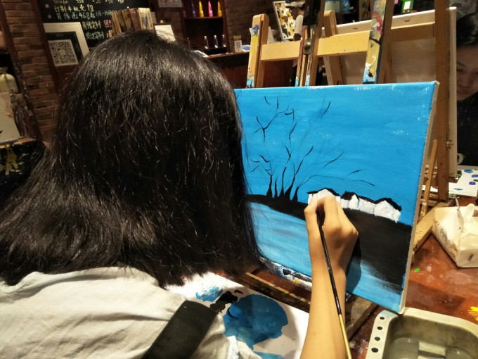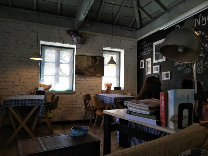 爬上狭窄的木楼梯 ,尽头小阁楼 上三三两两的桌椅 ,铺着方格子桌布简而单温馨。