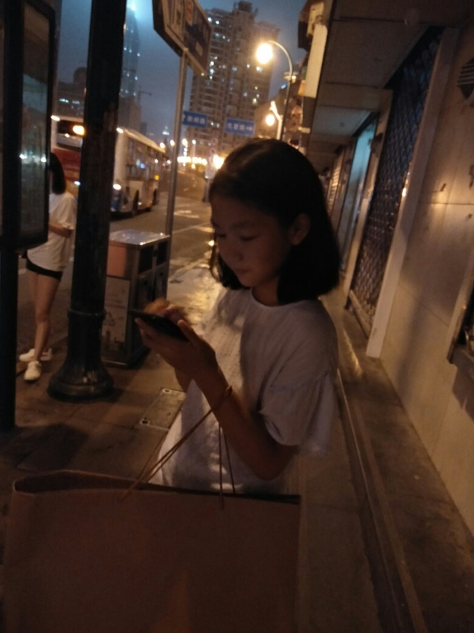 忽然想带她乘坐深夜的公交,看看繁华落尽的魔都。在西藏北路曲阜路公交站台上,再走几步就是苏州河了。夜灯璀璨,她低头看手机的浅浅一笑的样子很美。长大以后她恋爱了也会不会与喜欢的人深夜乘公交看城市的夜景呢?