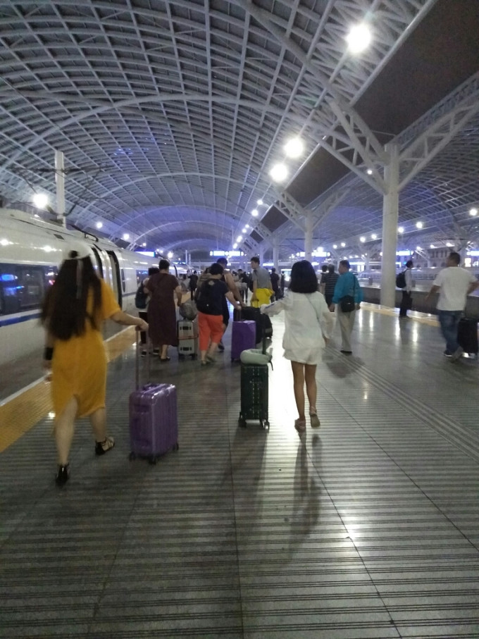因为这次旅行太过随意,以至于我们都认为动车应该是在虹桥,结果6点半赶到虹桥才发现出发站是上海站,即使再折回去也赶不上了。只能改签到下午2点20,二等座也换乘了一等座。为了弥补过错,带着一大一小去星巴克蹭网。