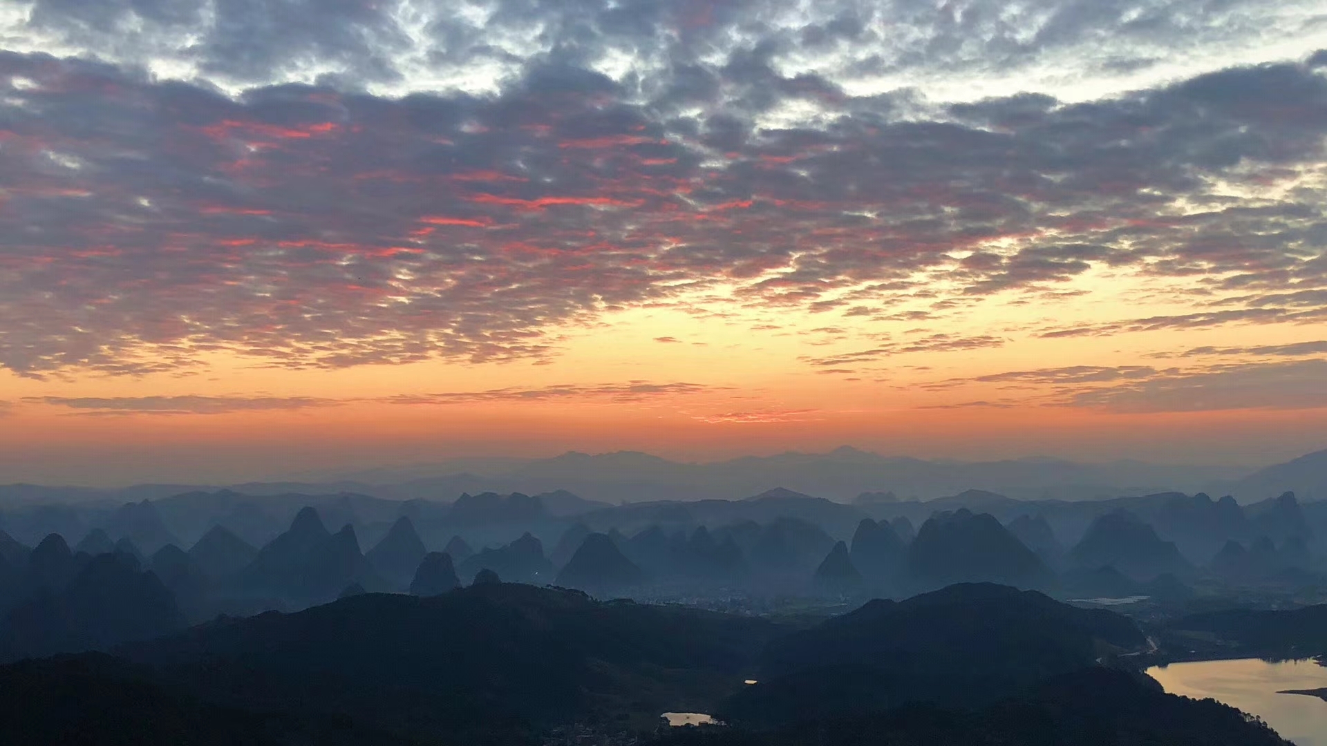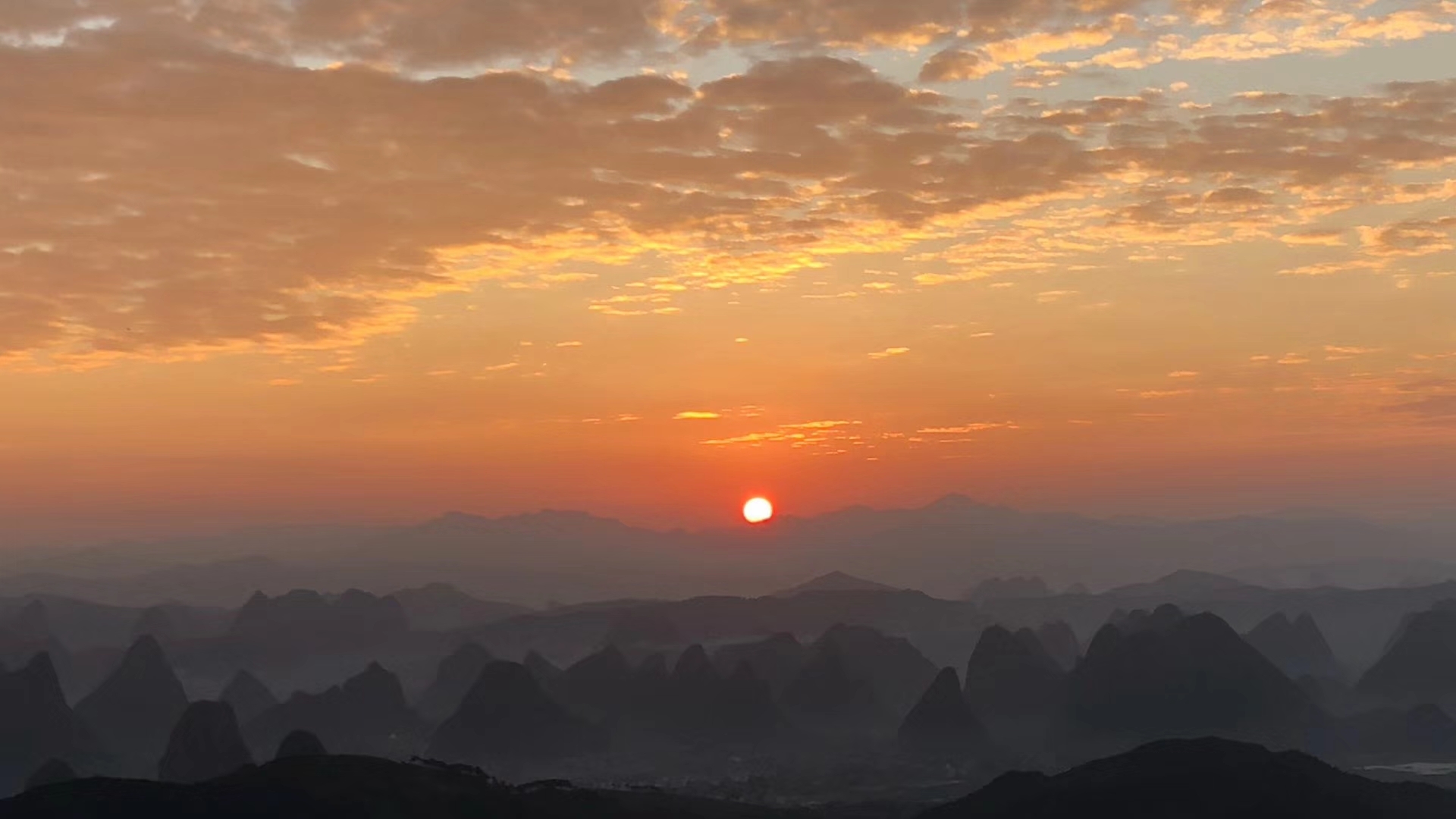 今次行程,东潭岭看日出是一个小期待,这是第三次在广西感受日出。凌晨五点半,小陈师傅如期来接我们,天黑黑,幸好通往东潭岭的山路早已修整好,自驾也完全没问题,大约30分钟车程,一到停车场,早已人满为患,好热闹。东潭岭上有一间客栈,但感觉晚上住那里有点恐怖。