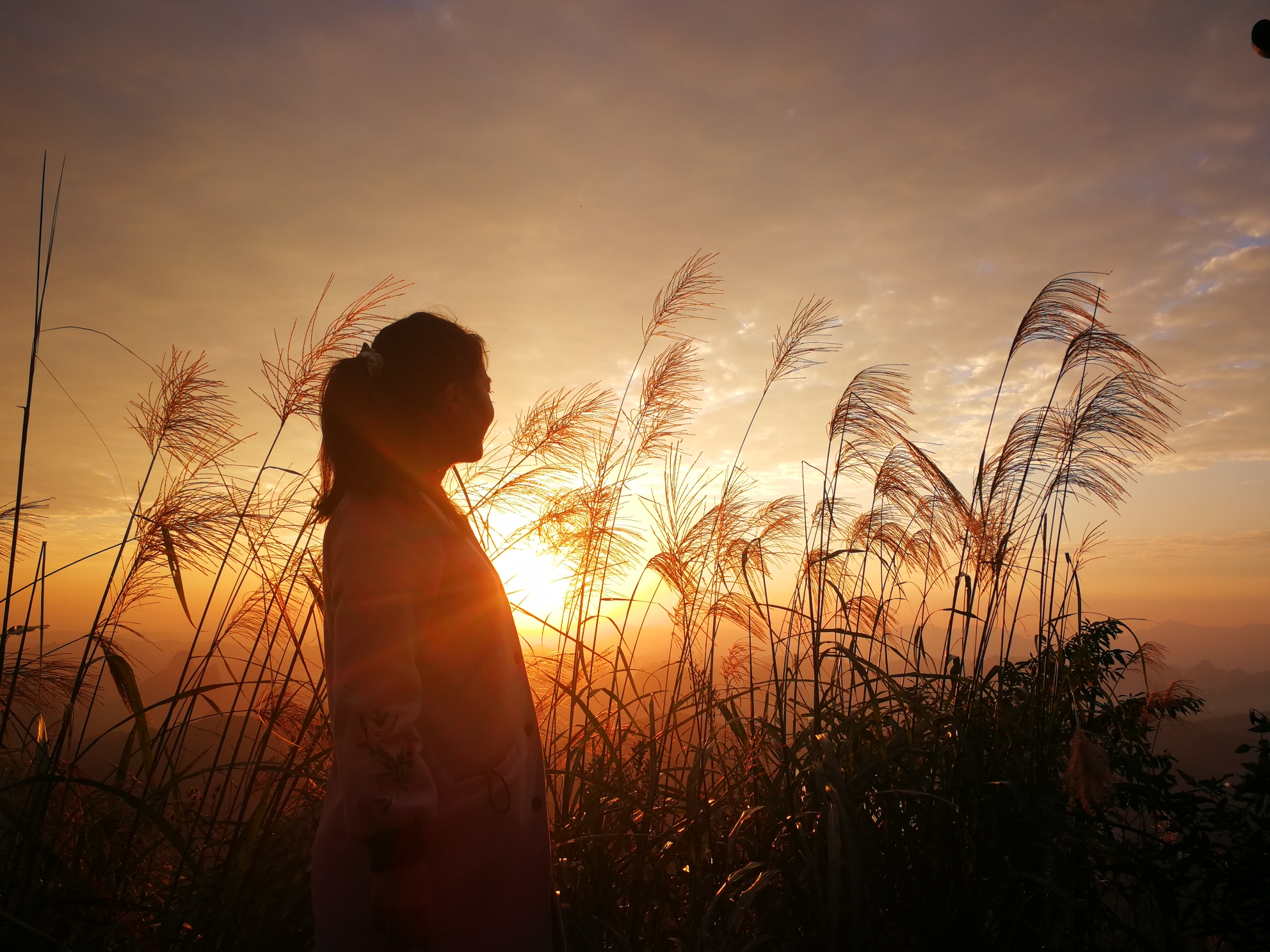 静静在风中守候,等啊等,大家以为都没戏了,有点落寞。突然有人大喊一声,“看那里……”东边透出丝丝亮光,重新燃点了我们的希望,一群人,抱着信念继续等待,太阳终于出来了,在云端展露出光芒,那是新的希望,那是新的力量。虽然当天没有云海,但这水墨画一样的质感,足以令我动容。我们逆着光,拍了一组照片,拍出了日落的感觉,哈哈!